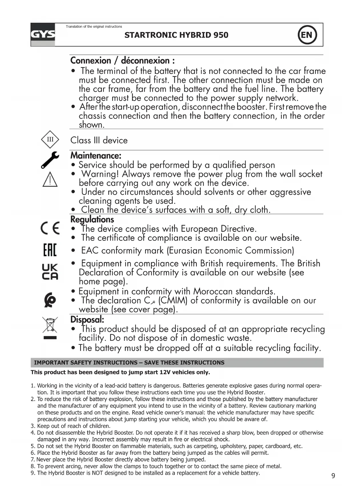 Startronic Hybrid 950 - Battery charger GYS - Free user manual and instructions