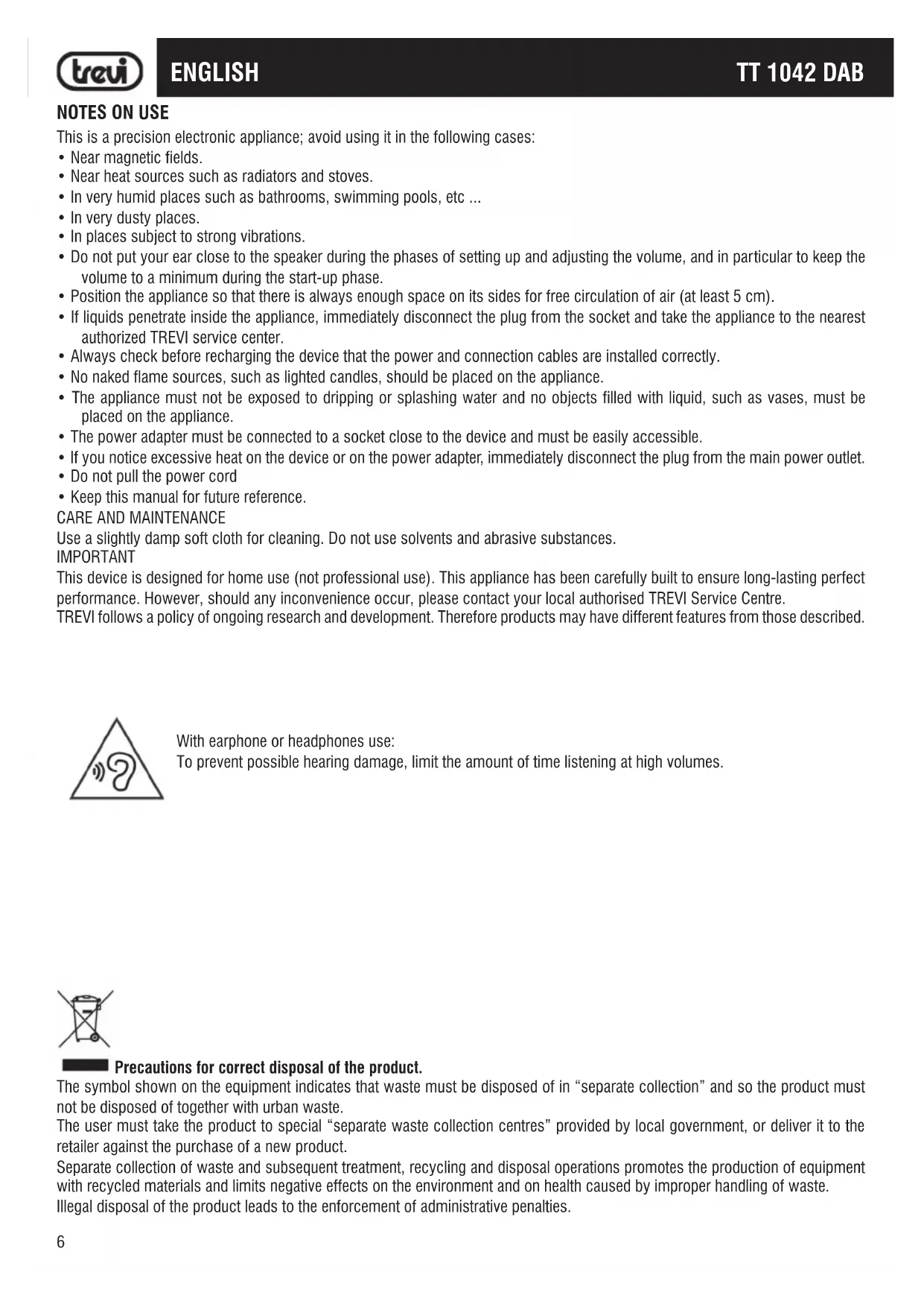 Find the device manual for free TT 1042 DAB Trevi in PDF.