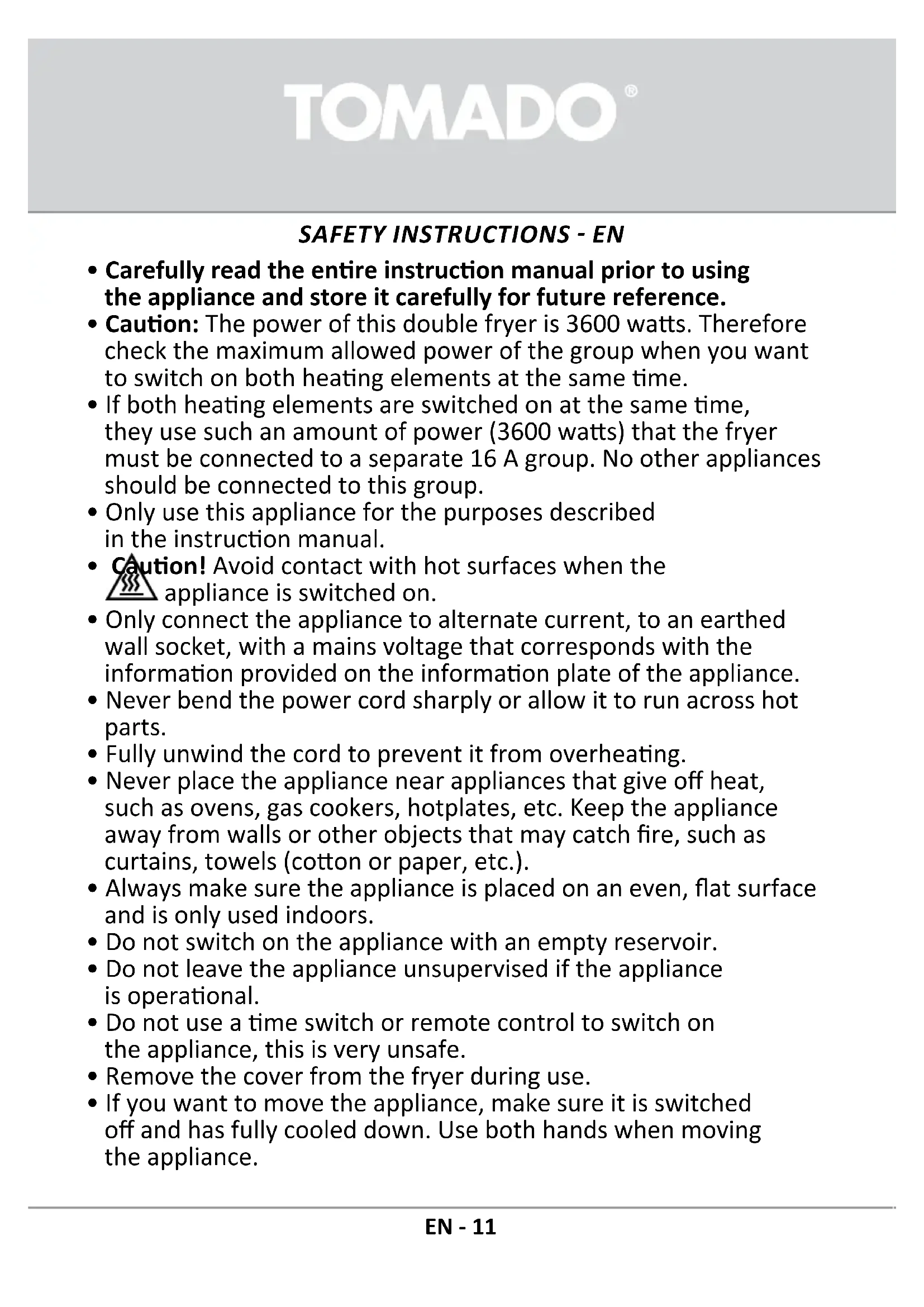 TDF6001S - Deep fryer Tomado - Free user manual and instructions