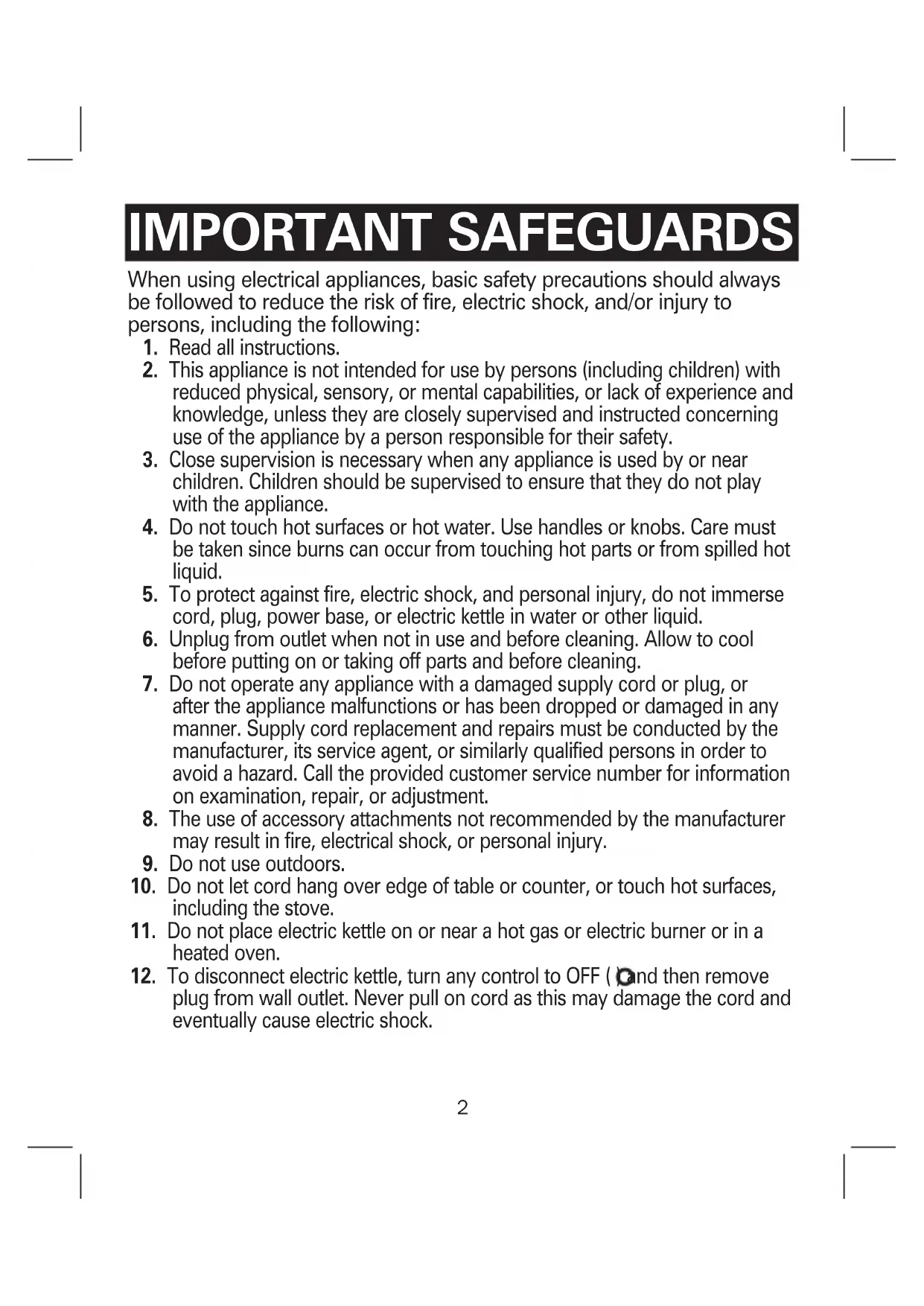 12. To disconnect electric kettle, turn any control to OFF ( ) and then remove
