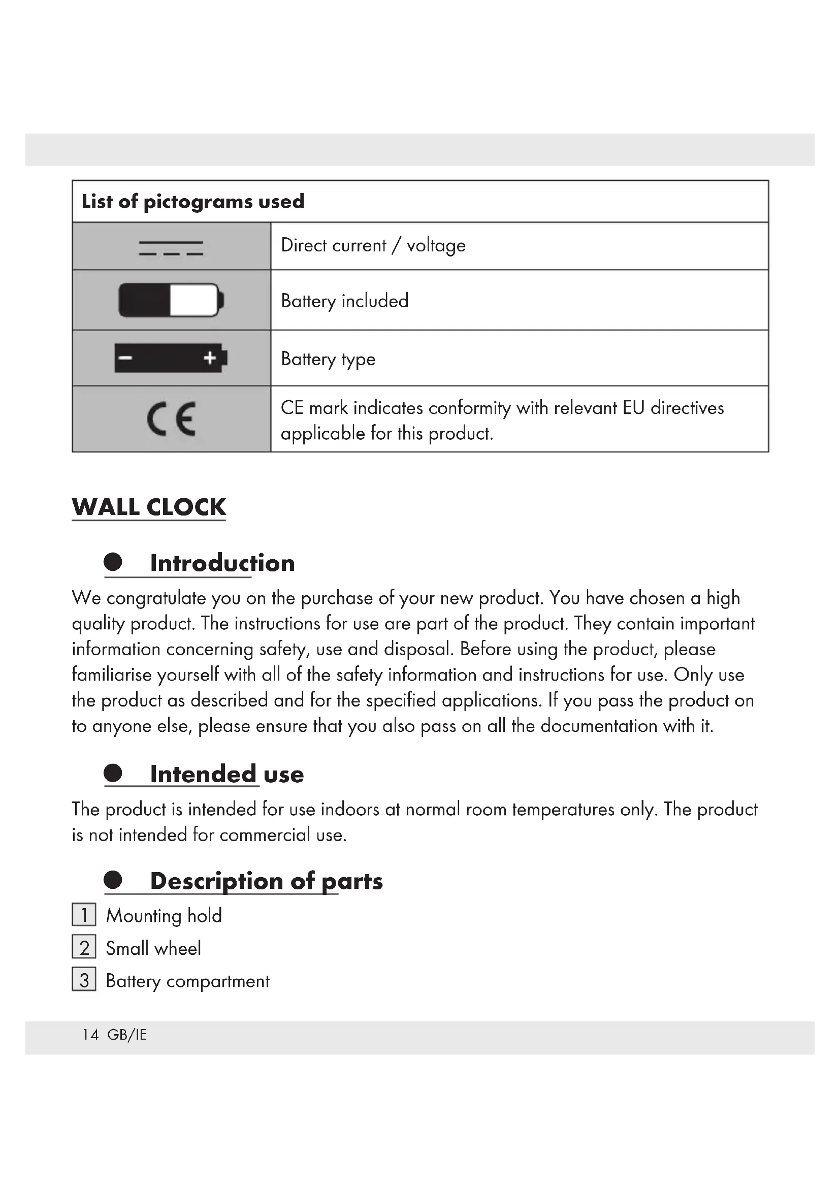Download the instructions for your Wall clock in PDF format for free! Find your manual HG09063A - AURIOL and take your electronic device back in hand. On this page are published all the documents necessary for the use of your device. HG09063A by AURIOL.
