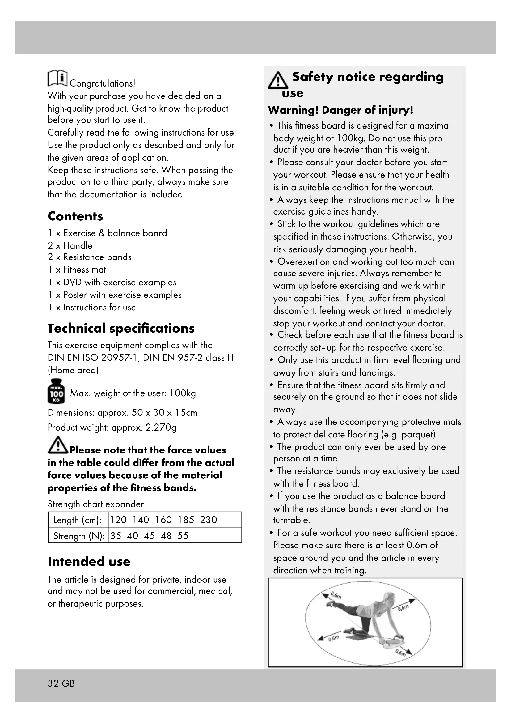 The product can only ever be used by one person at a time. - The resistance bands may exclusively be used with the fitness board.
