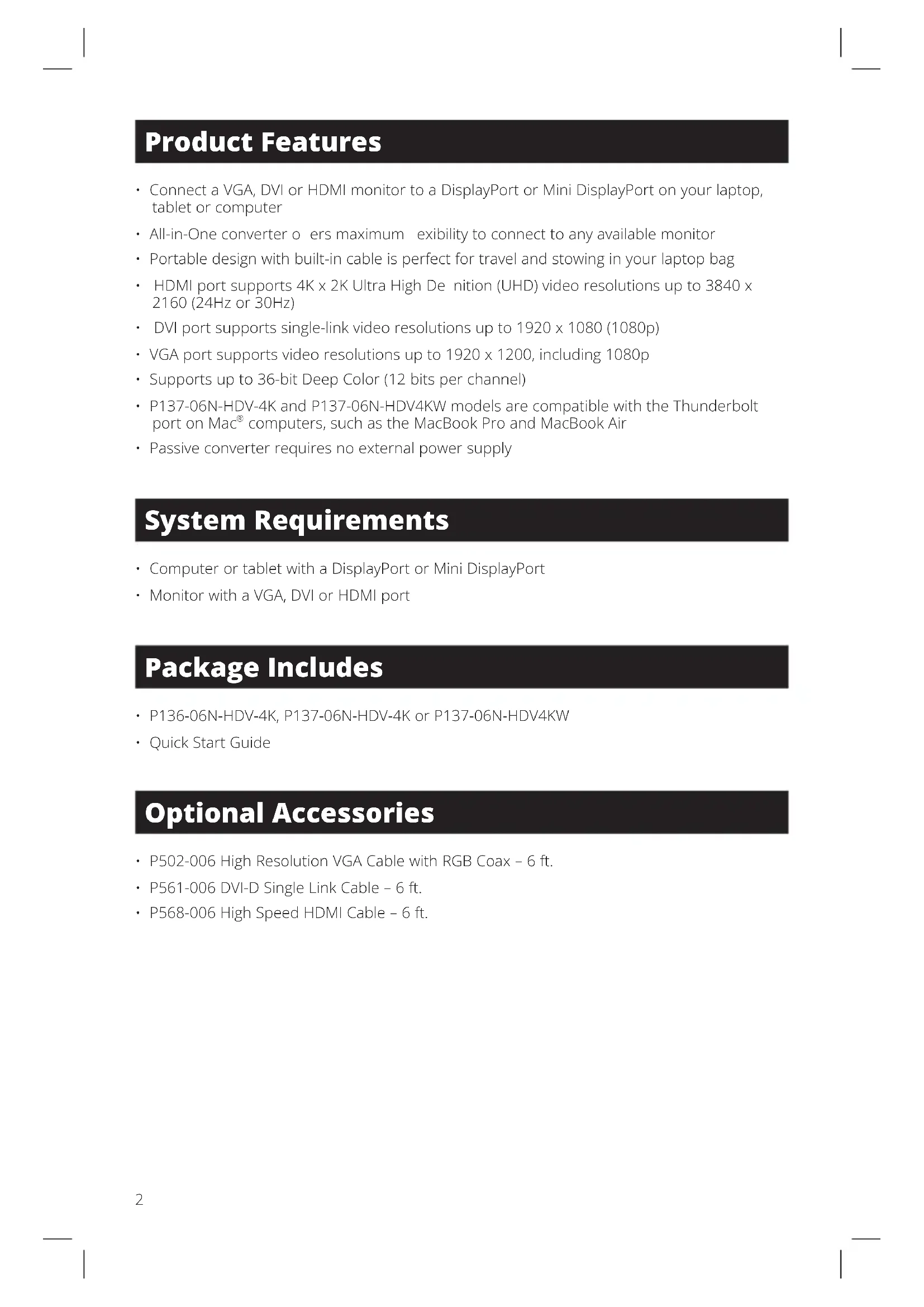 Download the instructions for your Video adapter in PDF format for free! Find your manual P137GHDVV2K - Tripp Lite and take your electronic device back in hand. On this page are published all the documents necessary for the use of your device. P137GHDVV2K by Tripp Lite.