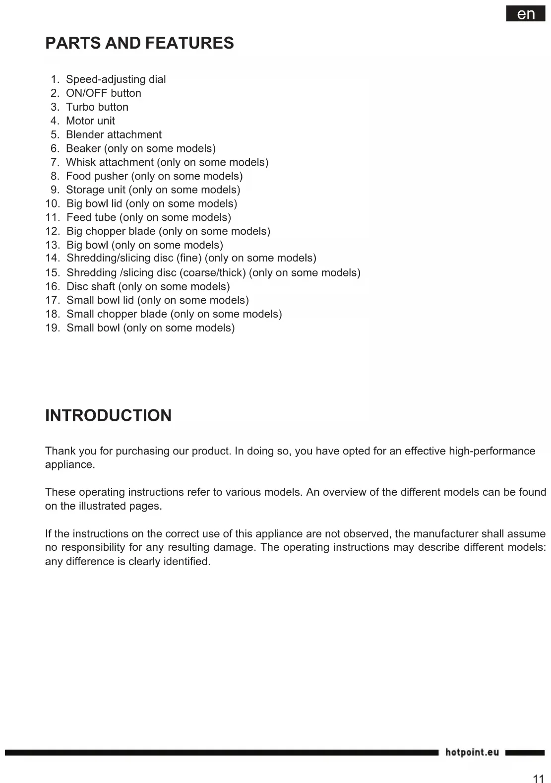 INTRODUCTION Thank you for purchasing our product. In doing so, you have opted for an effective high-performance appliance. These operating instructions refer to various models. An overview of the different models can be found on the illustrated pages. If the instructions on the correct use of this appliance are not observed, the manufacturer shall assume no responsibility for any resulting damage. The operating instructions may describe different models: any difference is clearly identied.12