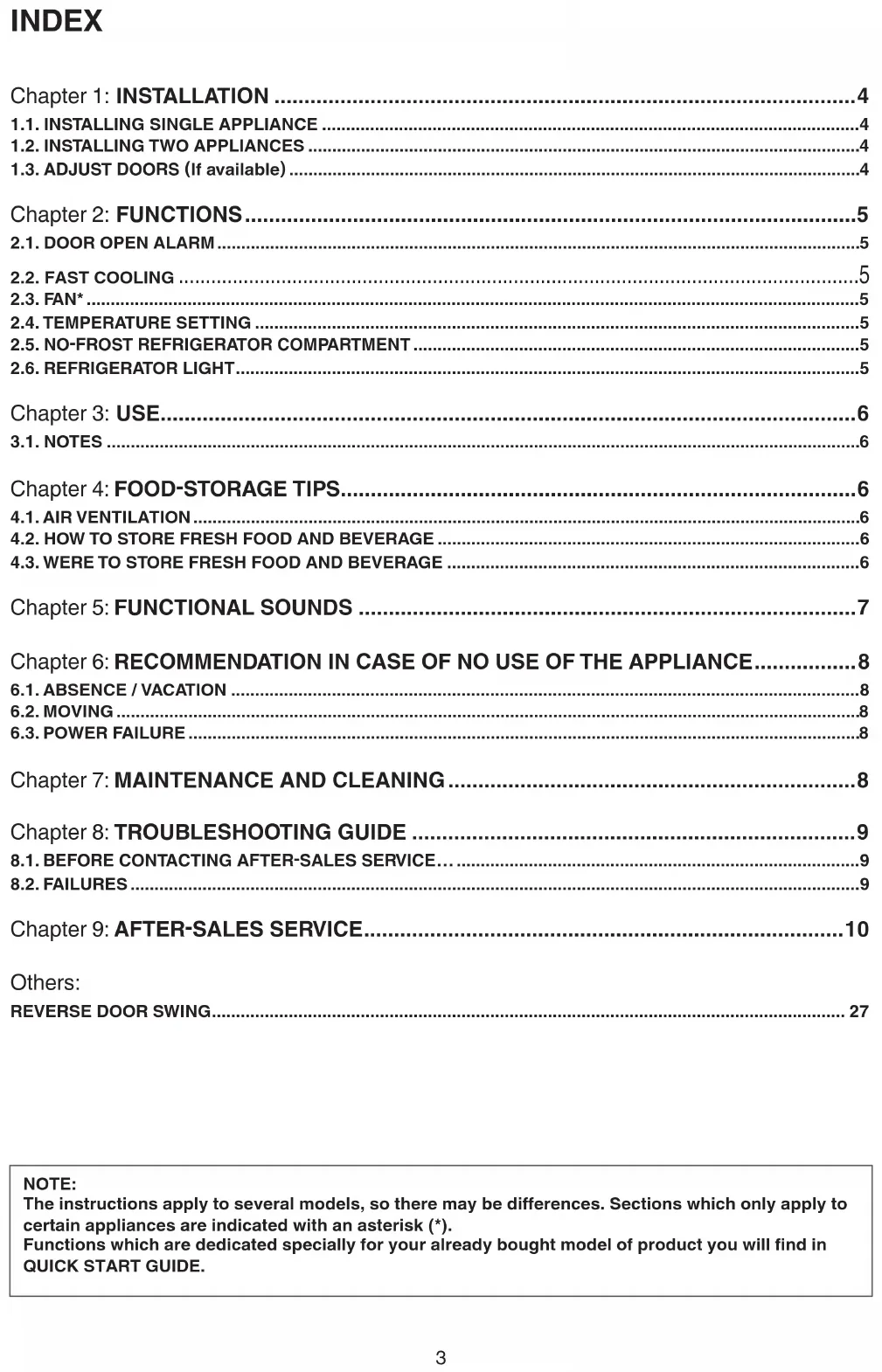 The instructions apply to several models, so there may be differences. Sections which only apply to certain appliances are indicated with an asterisk (^*) .