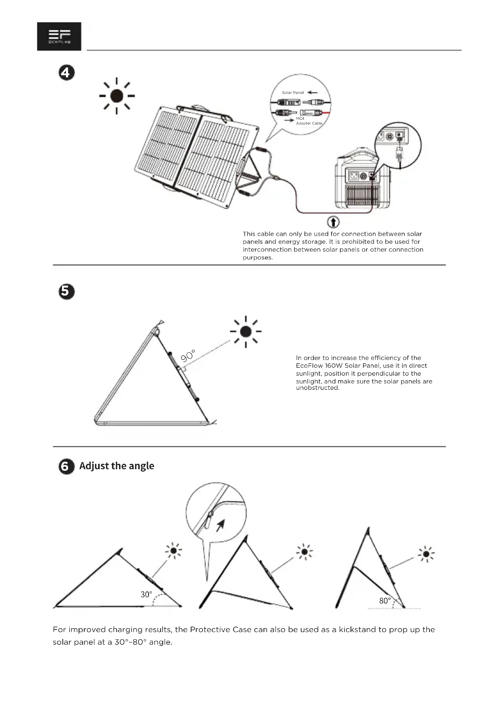 For improved charging results, the Protective Case can also be used as a kickstand to prop up the solar panel at a 30^ - 80^ angle.