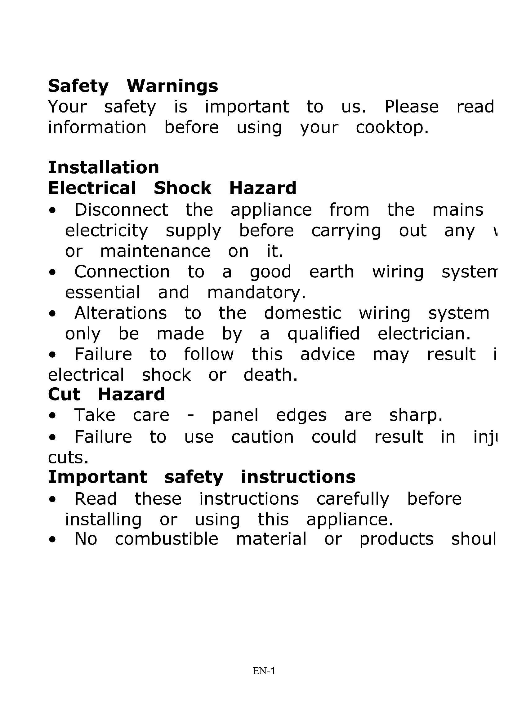- Failure to follow this advice could result in burns and scalds. Cut Hazard