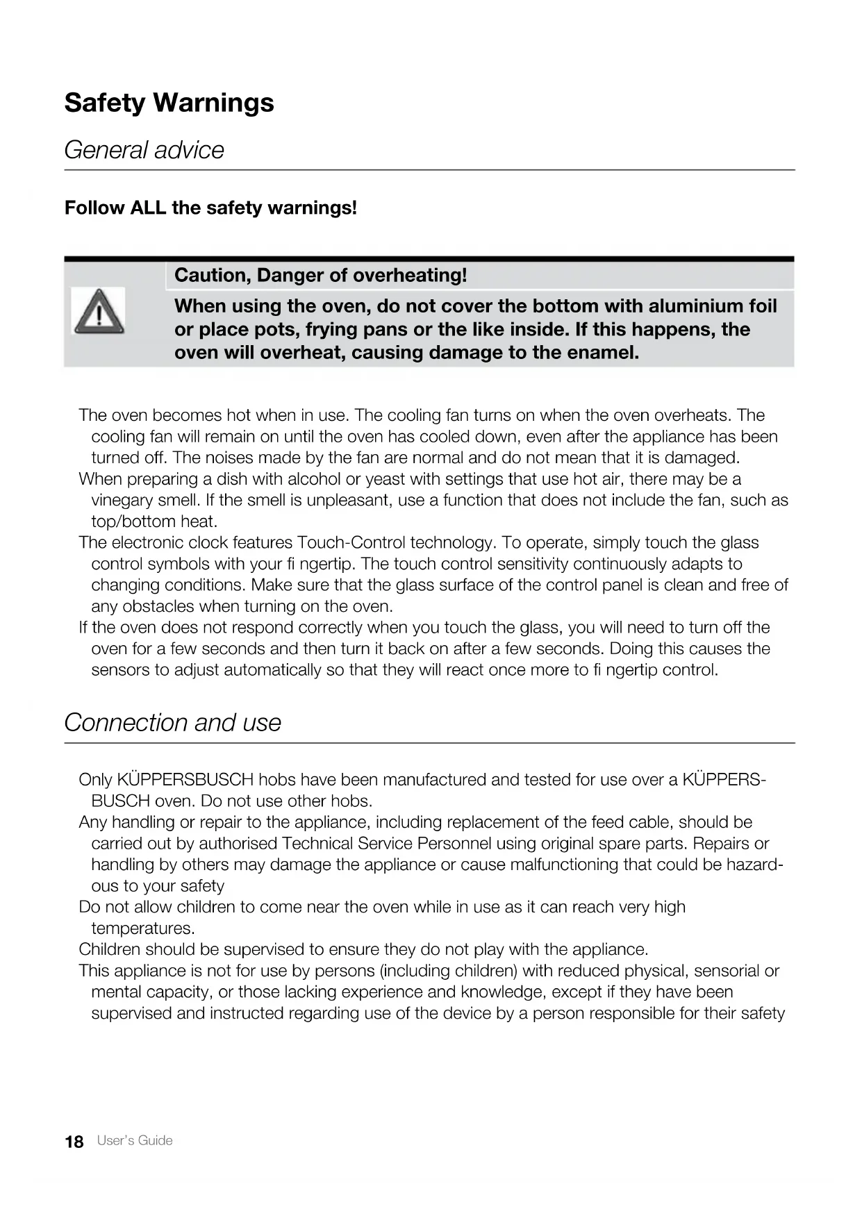 • Only KÜPPERSBUSCH hobs have been manufactured and tested for use over a KÜPPERS- BUSCH oven. Do not use other hobs.