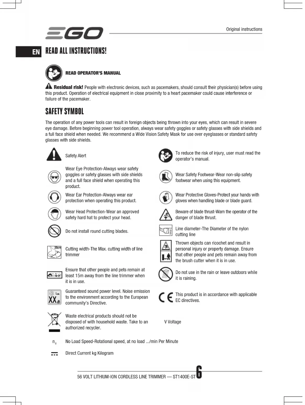 ST1401EST - Grass trimmer EGO - Free user manual and instructions