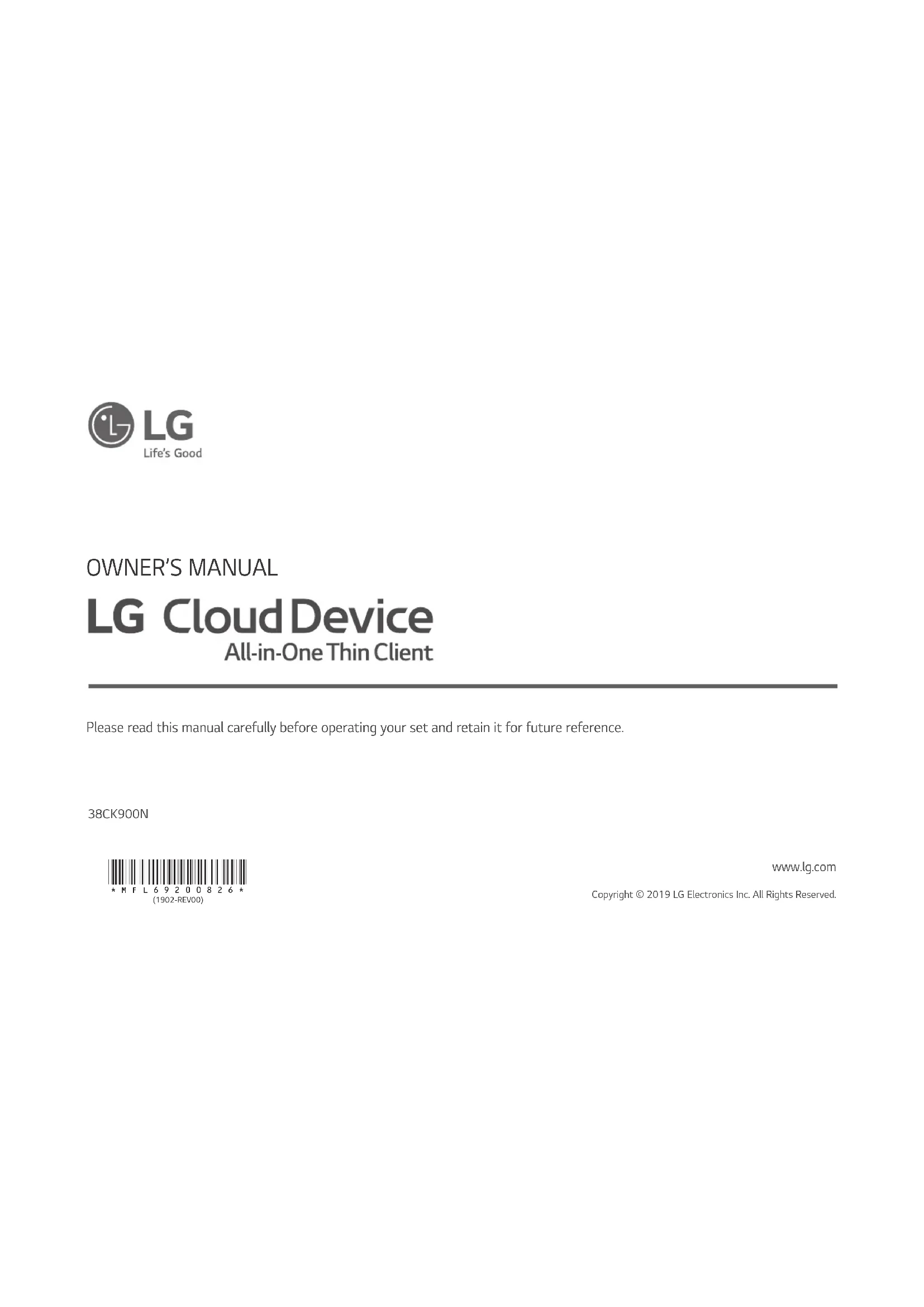 38CK900N *MFL69200826* (1902-REV00) www.lg.com Copyright © 2019 LG Electronics Inc. All Rights Reserved.2 ENGLISH LICENSE Each model has different licenses. Visit www.lg.com for more information on the license. The terms HDMI and HDMI High-Definition Multimedia Interface, and the HDMI Logo are trademarks or registered trademarks of HDMI Licensing Administrator, Inc. in the United States and other countries. The SuperSpeed USB Trident logo is a registered trademark of USB Implementers Forum, Inc. SD Logo is a trademark of SD-3C, LLC The Bluetooth ® word mark and logos are registered trademarks owned by Bluetooth SIG, Inc. and any use of such marks by LG Electronics Inc. is under license. Other trademarks and trade names are those of their respective owners.