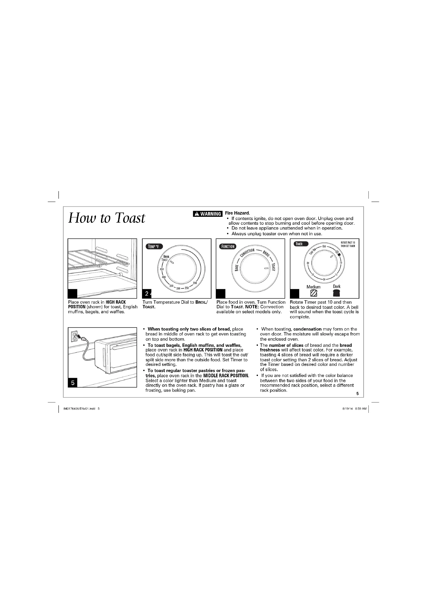 - Always unplug toaster oven when not in use. w WARNING 840176406 ENv01.indd 7840176406 ENv01.indd 7 8/19/14 8:59 AM8/19/14 8:59 AM8 Fire Hazard.