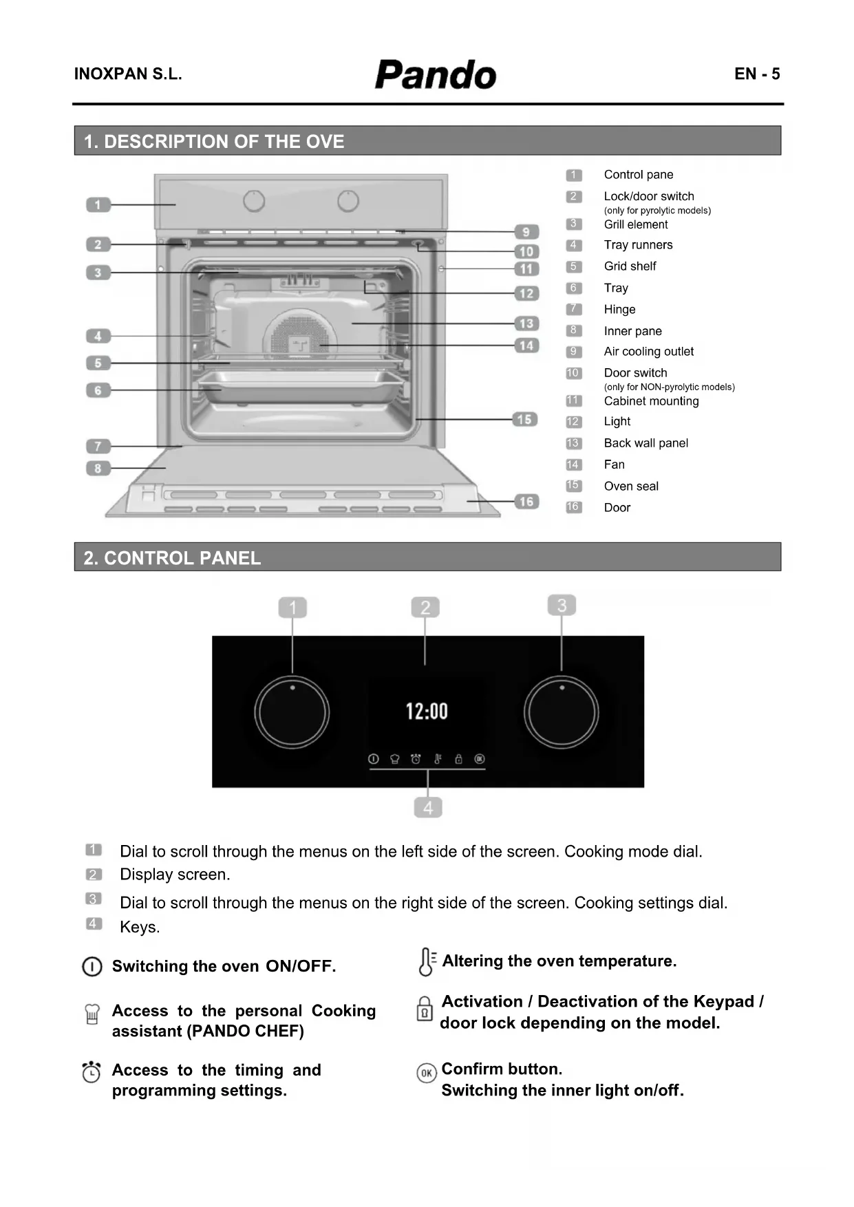 Before touching the inner surface of the oven directly, make sure that the temperature is not too hot.INOXPAN S.L. EN - 20