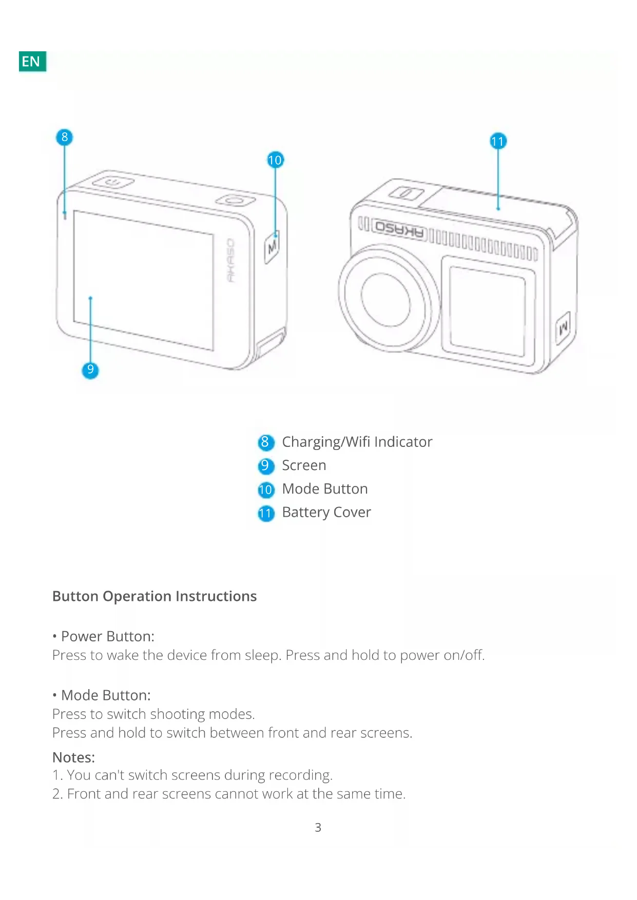 - Front and rear screens cannot work at the same time.