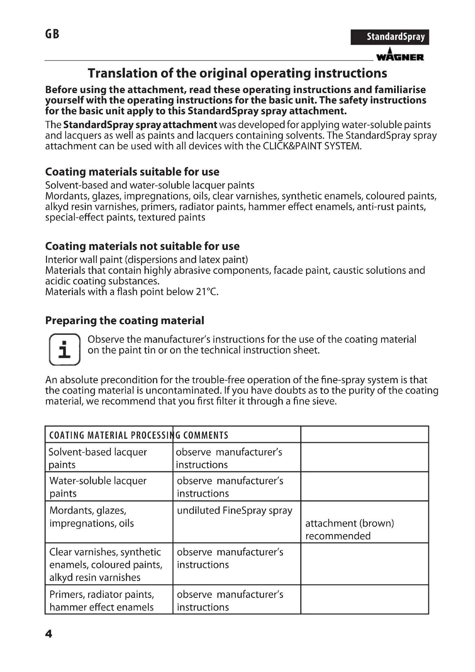 Find the device manual for free StandardSpray WAGNER in PDF.