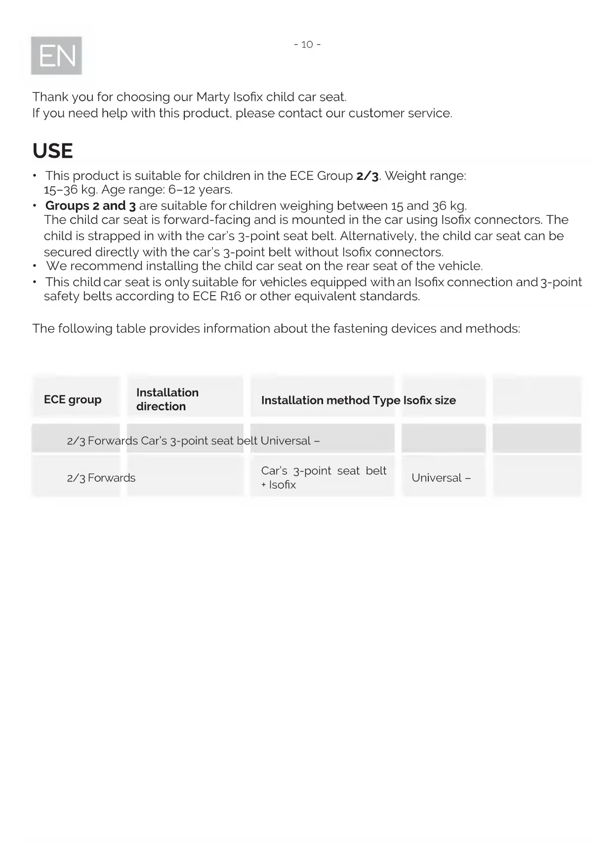 Thank you for choosing our Marty Isofix child car seat.