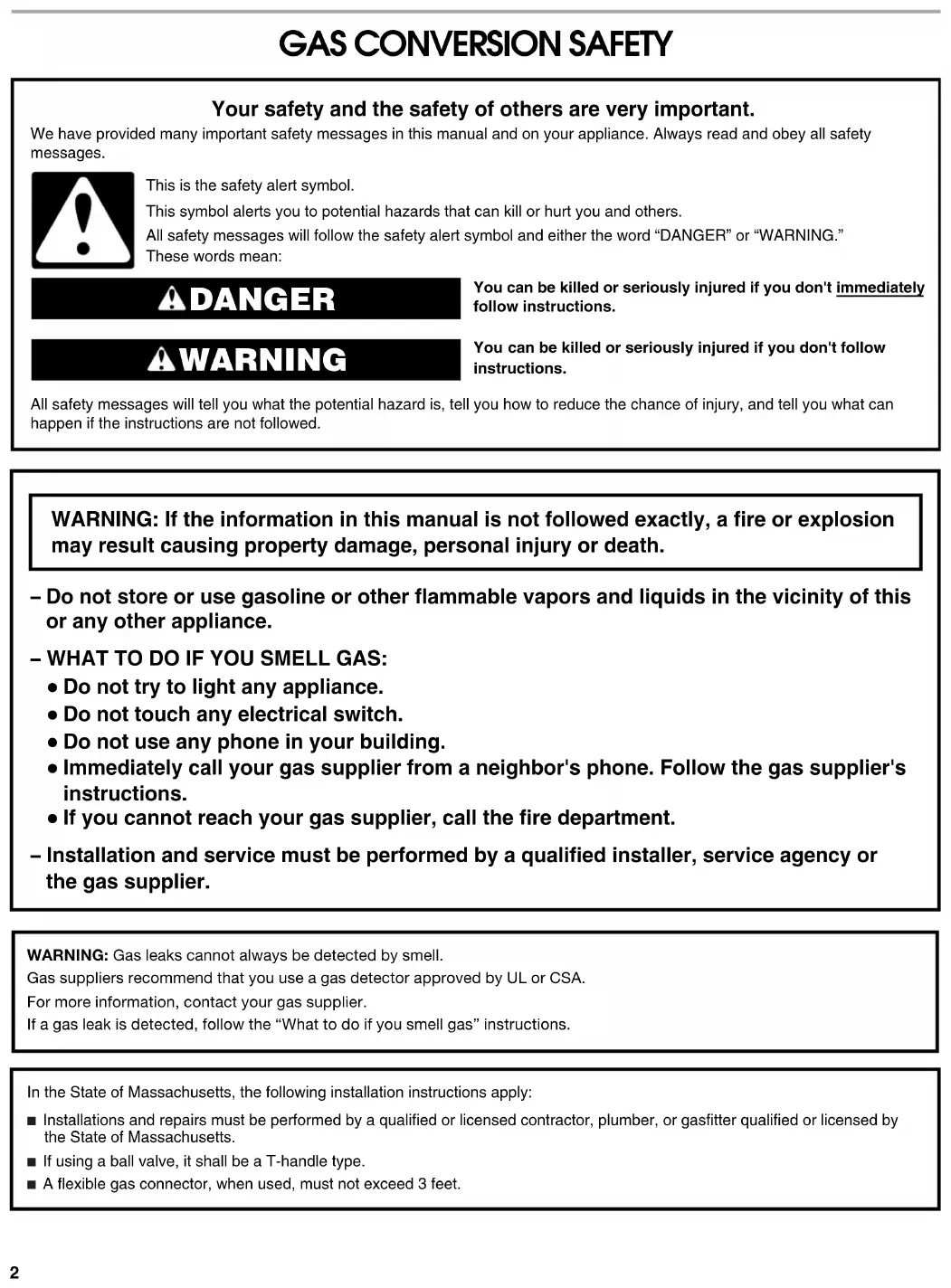 WARNING: Gas leaks cannot always be detected by smell.