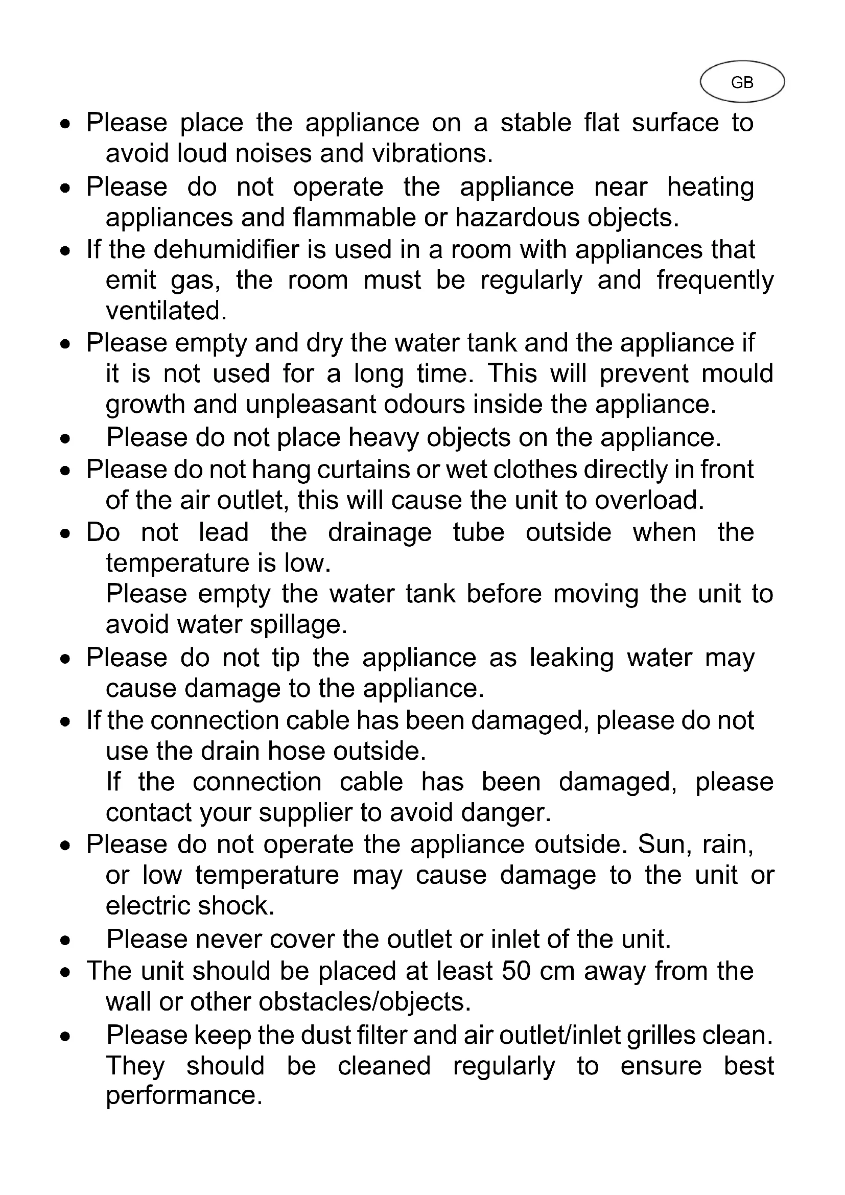 - Please empty and dry the water tank and the appliance if it is not used for a long time. This will prevent mould growth and unpleasant odours inside the appliance.