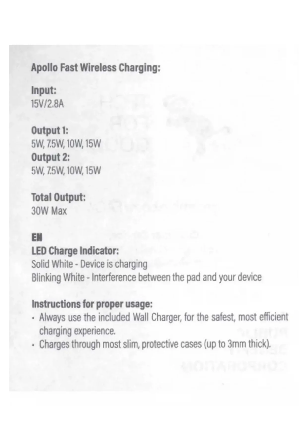 gonimble.com/support Email hello@gonimble.com PUBLIC BENEFIT CORPORATIONApollo Fast Wireless Charging: Input: 15V/2.8A Output
