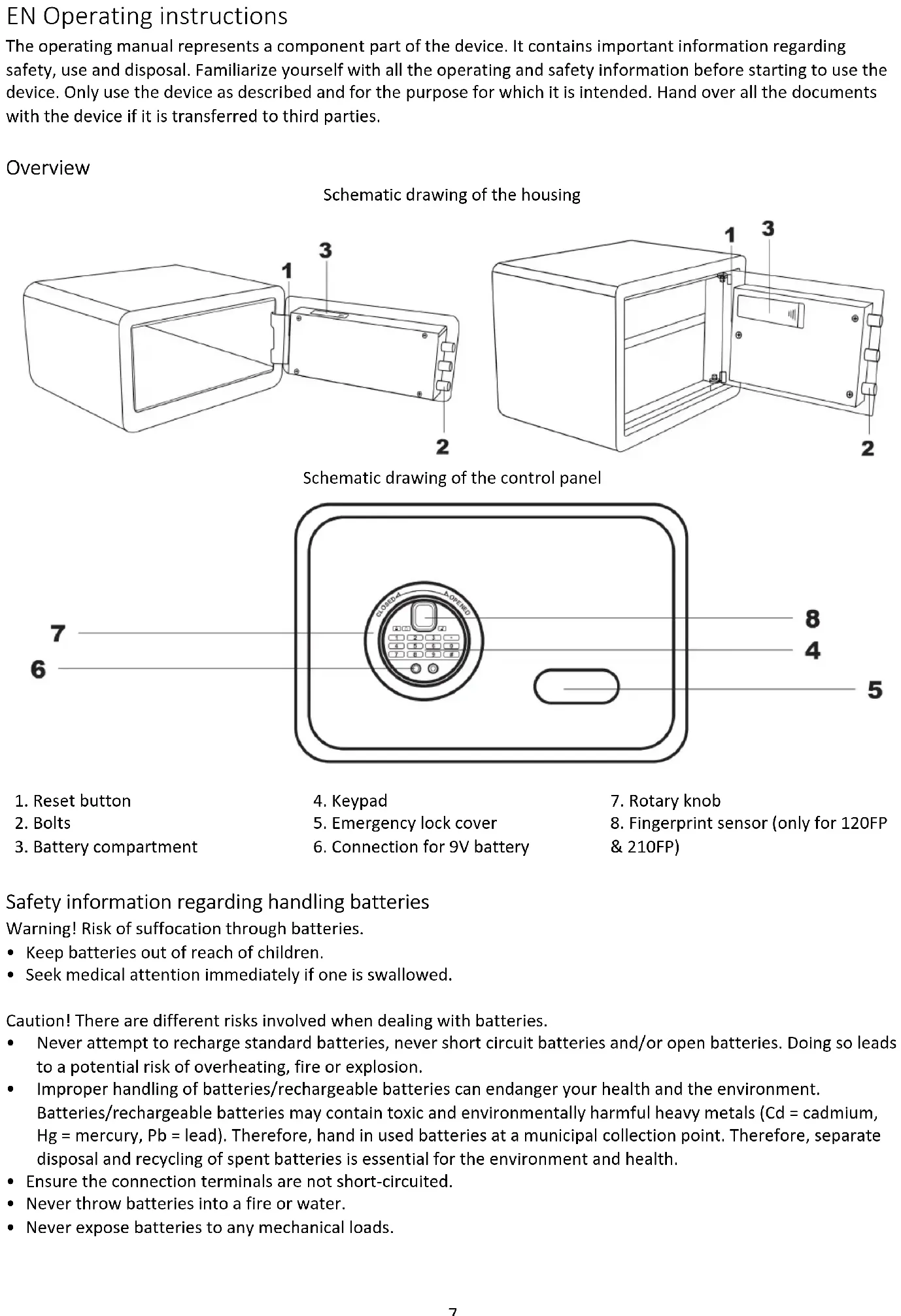 & 210FP) Safety information regarding handling batteries Warning! Risk of suffocation through batteries.
