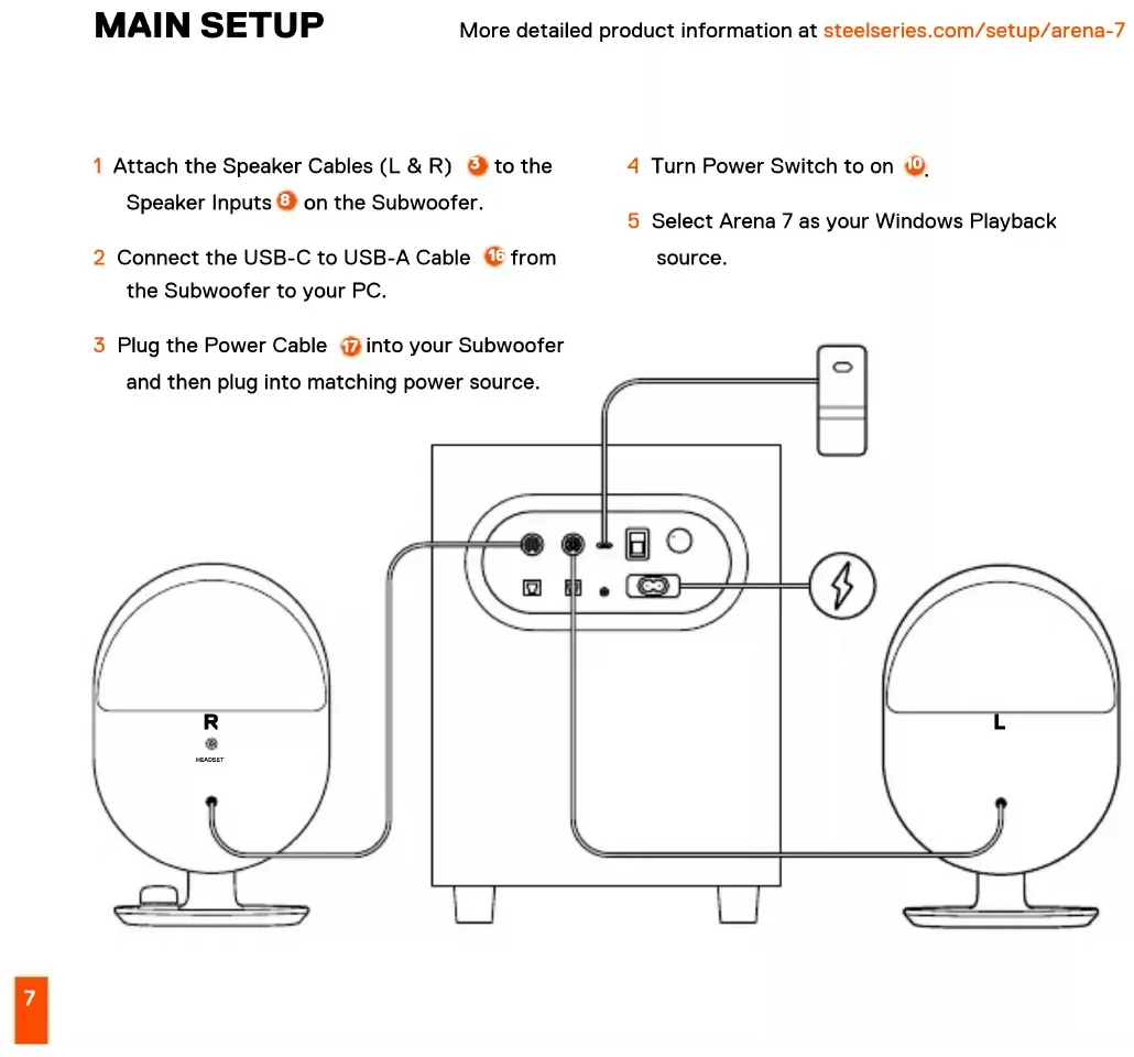 Download the instructions for your Speaker in PDF format for free! Find your manual Arena 7 - STEELSERIES and take your electronic device back in hand. On this page are published all the documents necessary for the use of your device. Arena 7 by STEELSERIES.