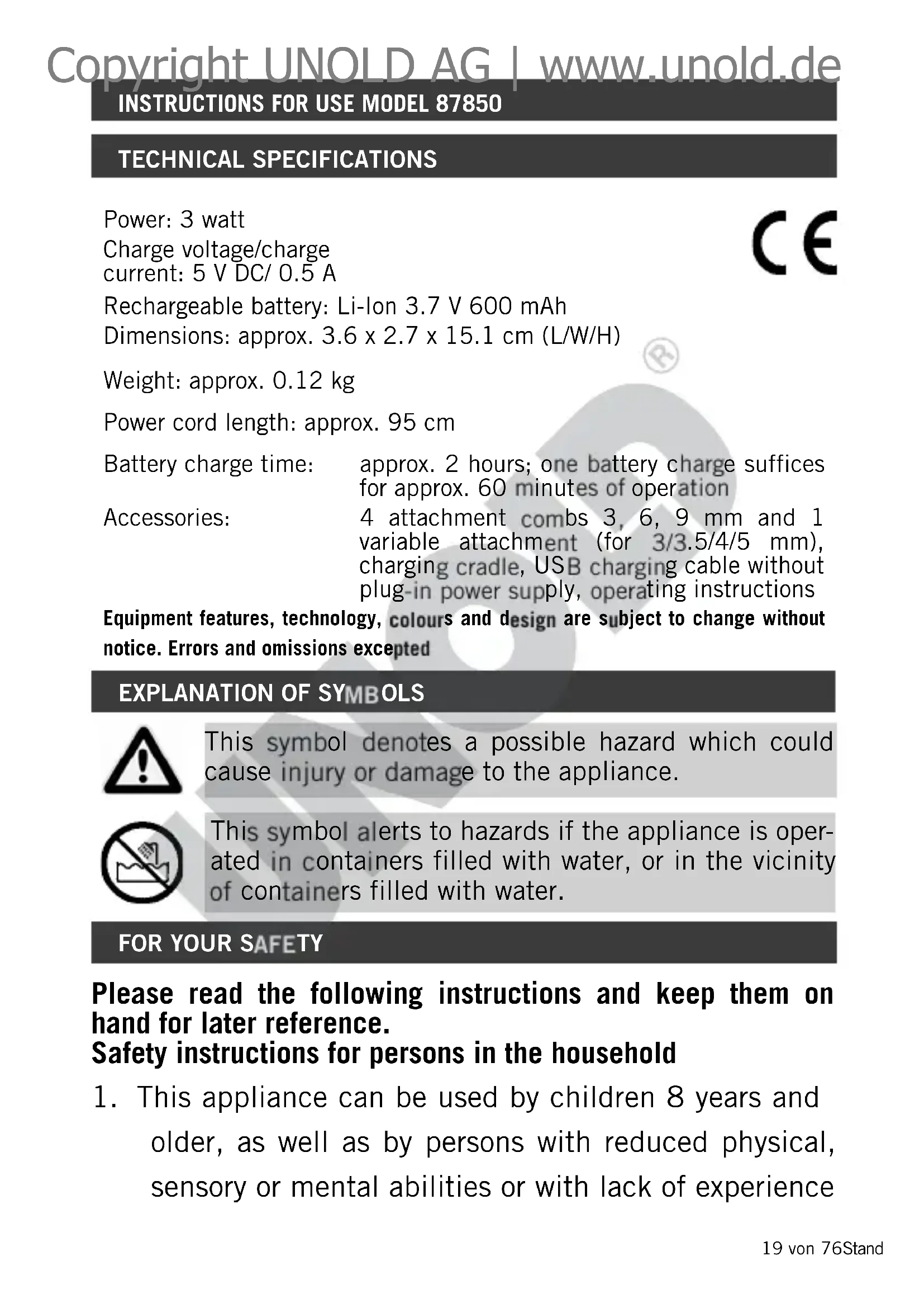 Download the instructions for your Shaver in PDF format for free! Find your manual Trim Luxury 87850 - UNOLD and take your electronic device back in hand. On this page are published all the documents necessary for the use of your device. Trim Luxury 87850 by UNOLD.