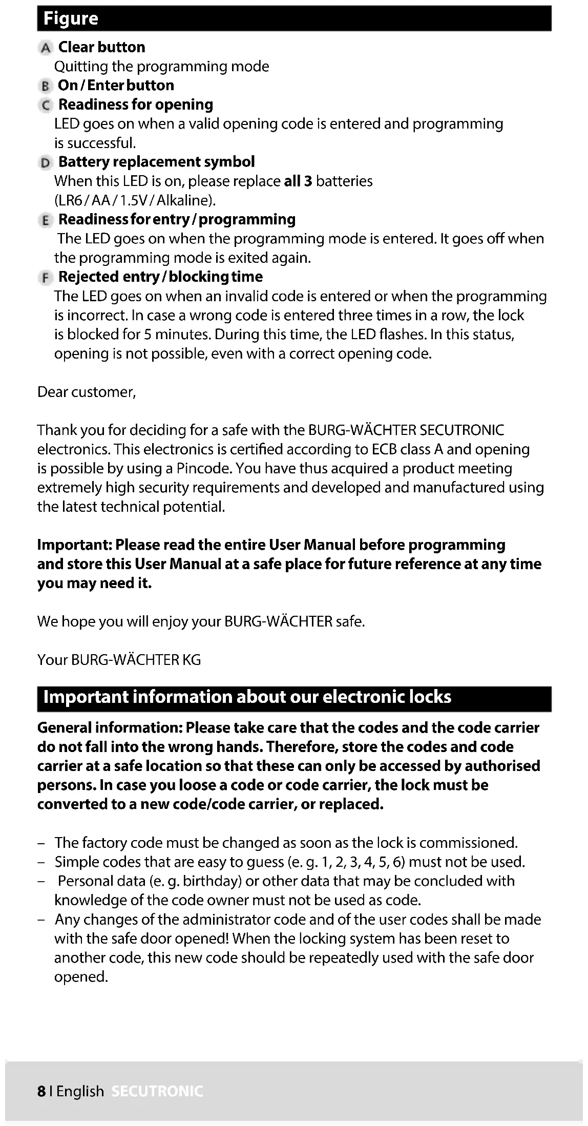 HomeSafe H 210 E - Safe Burg Wächter - Free user manual and instructions