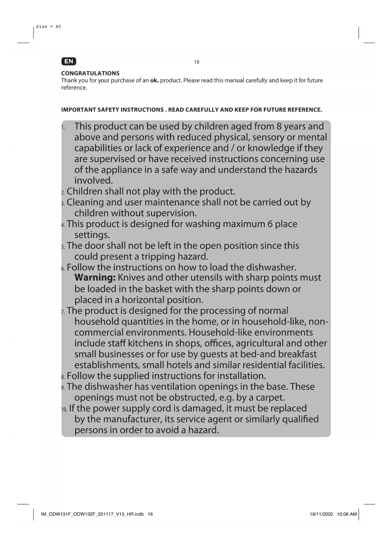 - Do not overload your dishwasher as this will impair the results. IM_ODW131F_ODW132F_201117_V13_HR.indb 21IM_ODW131F_ODW132F_201117_V13_HR.indb 21 19/11/2020 10:06 AM19/11/2020 10:06 AM22 Size = A5