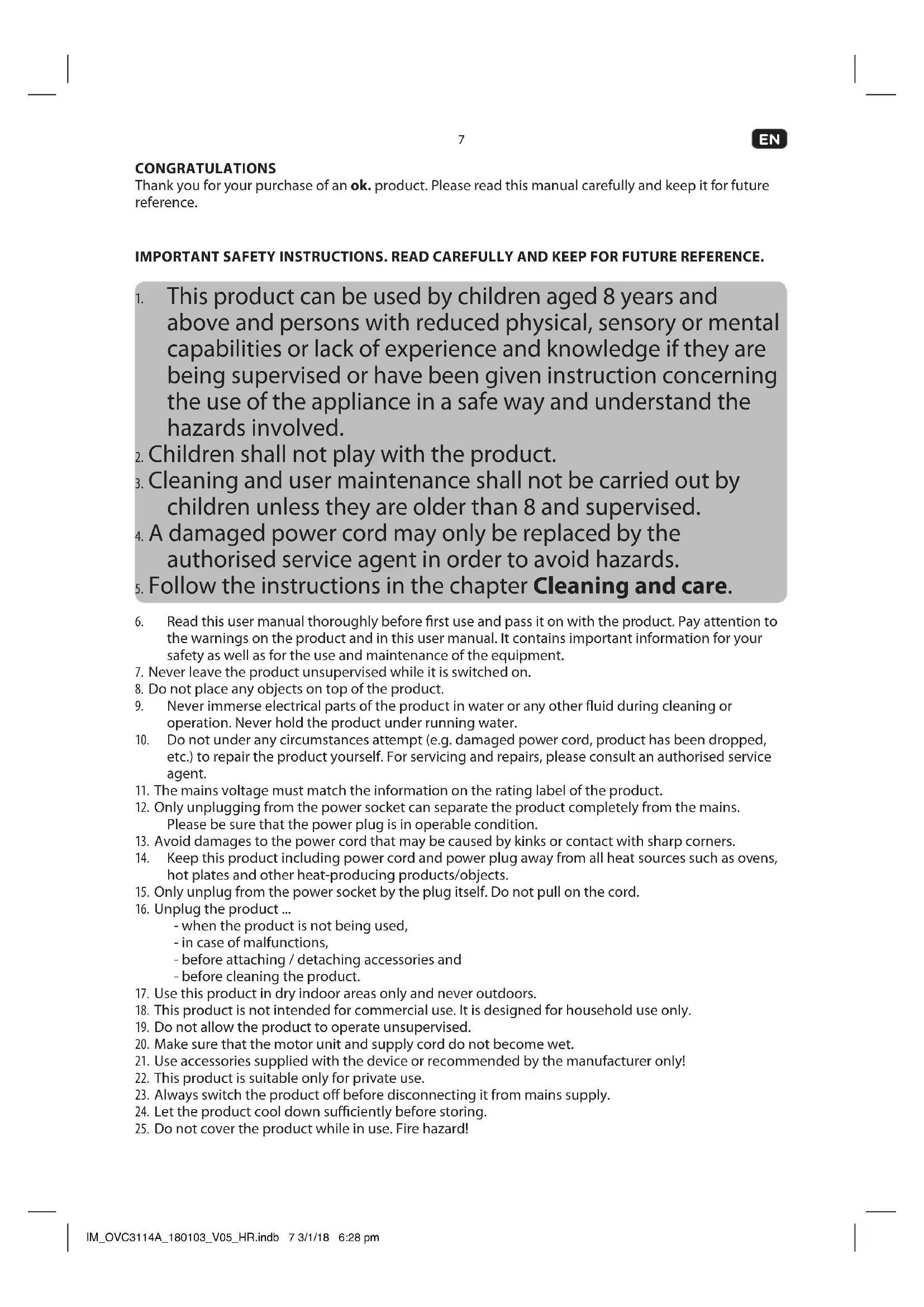 CONGRATULATIONS Thank you for your purchase of an ok. product. Please read this manual carefully and keep it for future reference. IMPORTANT SAFETY INSTRUCTIONS. READ CAREFULLY AND KEEP FOR FUTURE REFERENCE.