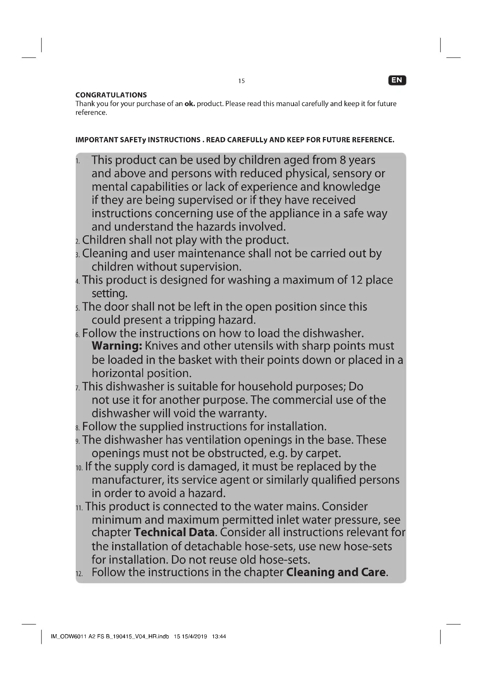 - This has no inuence in the dishwasher function IM_ODW6011 A2 FS B_190415_V04_HR.indb 25 15/4/2019 13:4426 Size = A5