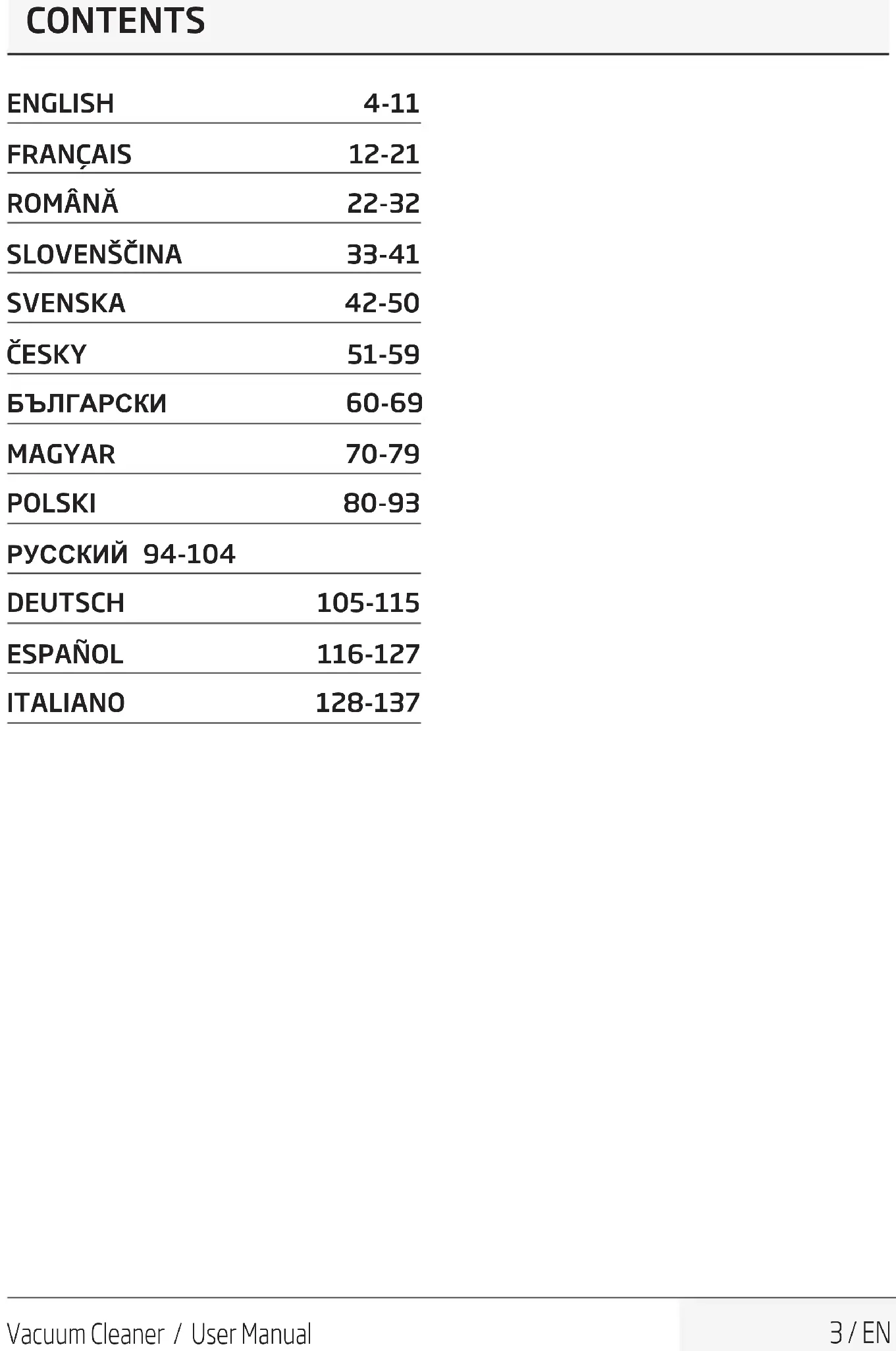 Warnngs aganst dangerous stuatons concernng the securty of lfe and property. Protecton class for electrc shock. This product has been produced in environmentally friendly, modern facilities.Does not contain PCB.Vacuum Cleaner / User Manual 3 / EN CONTENTS ENGLISH 4-11
