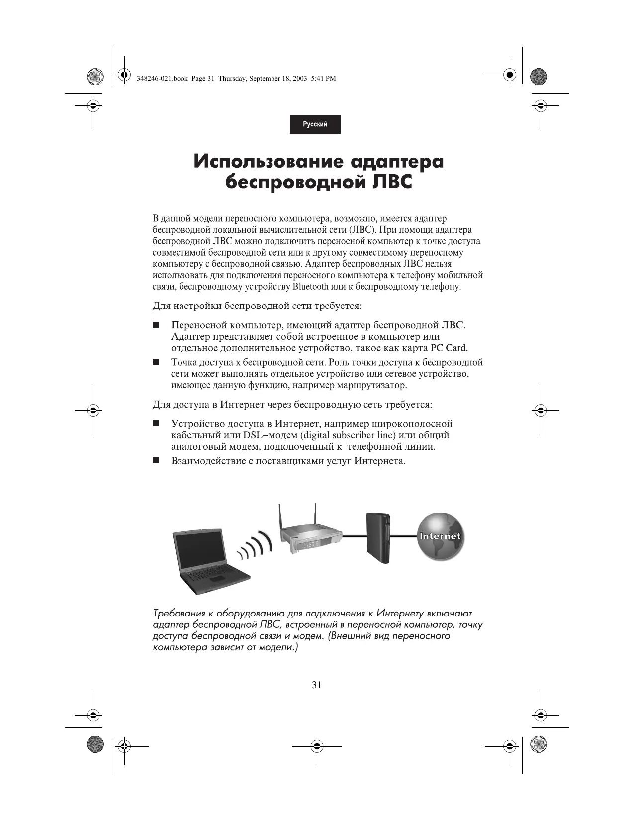 348246-021.book Page 2 Thursday, September 18, 2003 5:41 PM To use a wireless LAN connection: