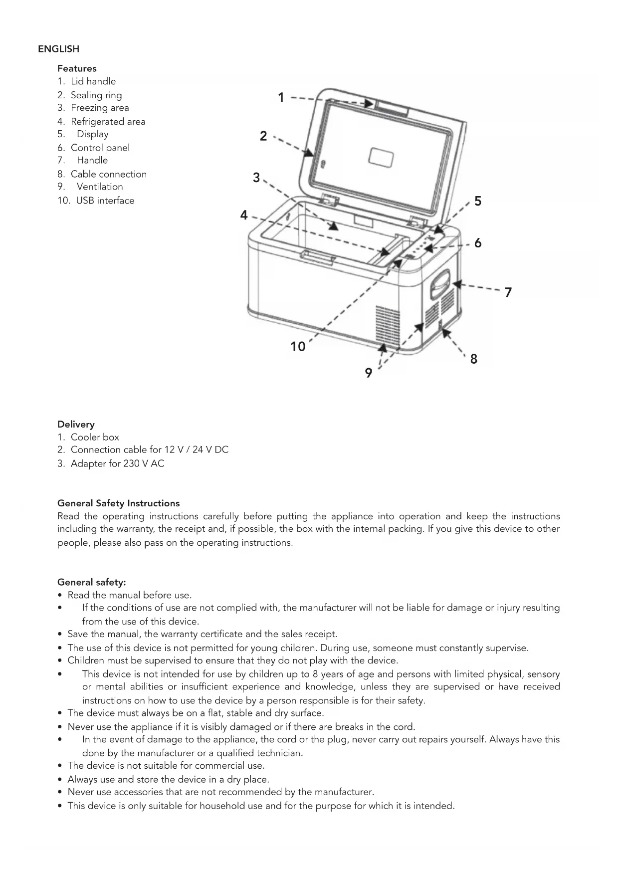 - For hygienic reasons, you must clean the inside and outside of the appliance with a damp cloth before using your cool box.