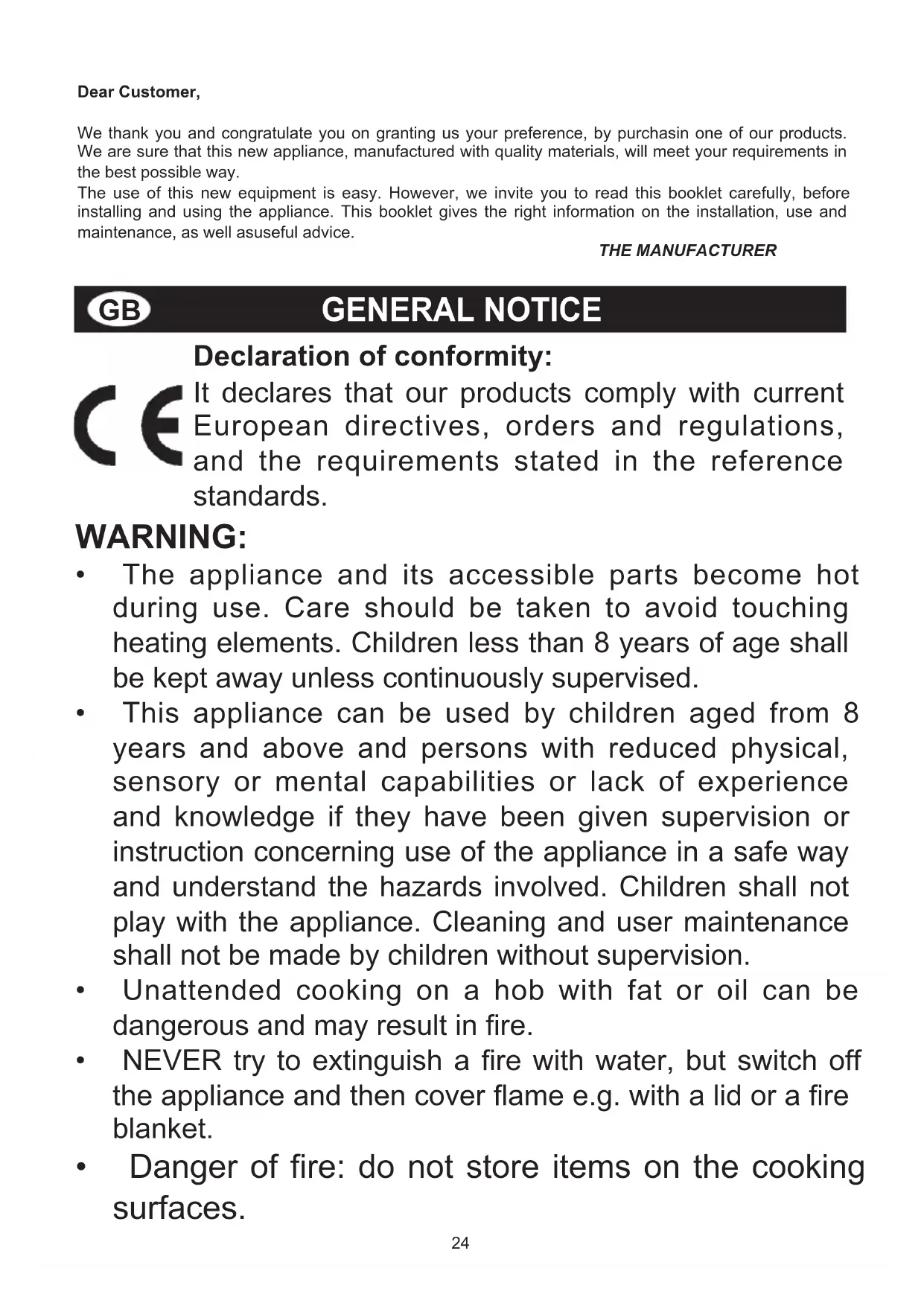 De aansluiting op de klem moet gebeuren zoals aangeduid op afbeelding 10-10A. Kabel L bruin (fase) Kabel N blauw (neutraal) Kabel groen-geel (massa)24 Declaration of conformity: It declares that our products comply with current European directives, orders and regulations, and the requirements stated in the reference standards. GENERAL NOTICE Dear Customer, We thank you and congratulate you on granting us your preference, by purchasin one of our products. We are sure that this new appliance, manufactured with quality materials, will meet your requirements in the best possible way. The use of this new equipment is easy. However, we invite you to read this booklet carefully, before installing and using the appliance. This booklet gives the right information on the installation, use and maintenance, as well asuseful advice. THE MANUFACTURER