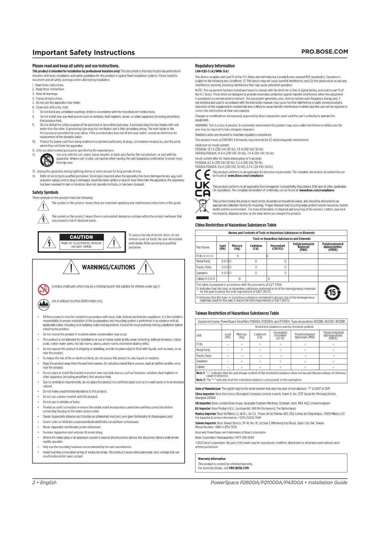 For warranty details, visit PRO.BOSE.COM