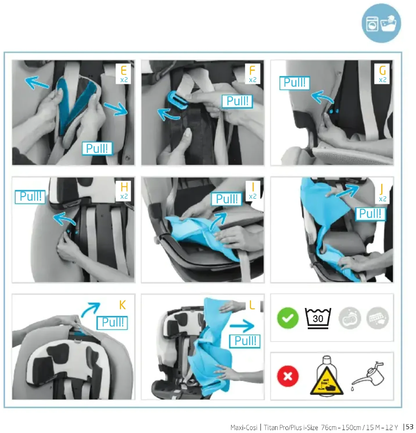 - The cover and crotch pad can be removed for washing. If the cover needs to be replaced at any time, only use ocial Maxi-Cosi cover because it constitutes an integral part of the restraint performance. EN56