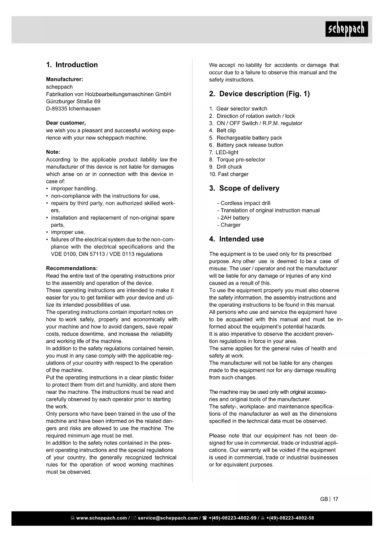 we wish you a pleasant and successful working experience with your new scheppach machine.