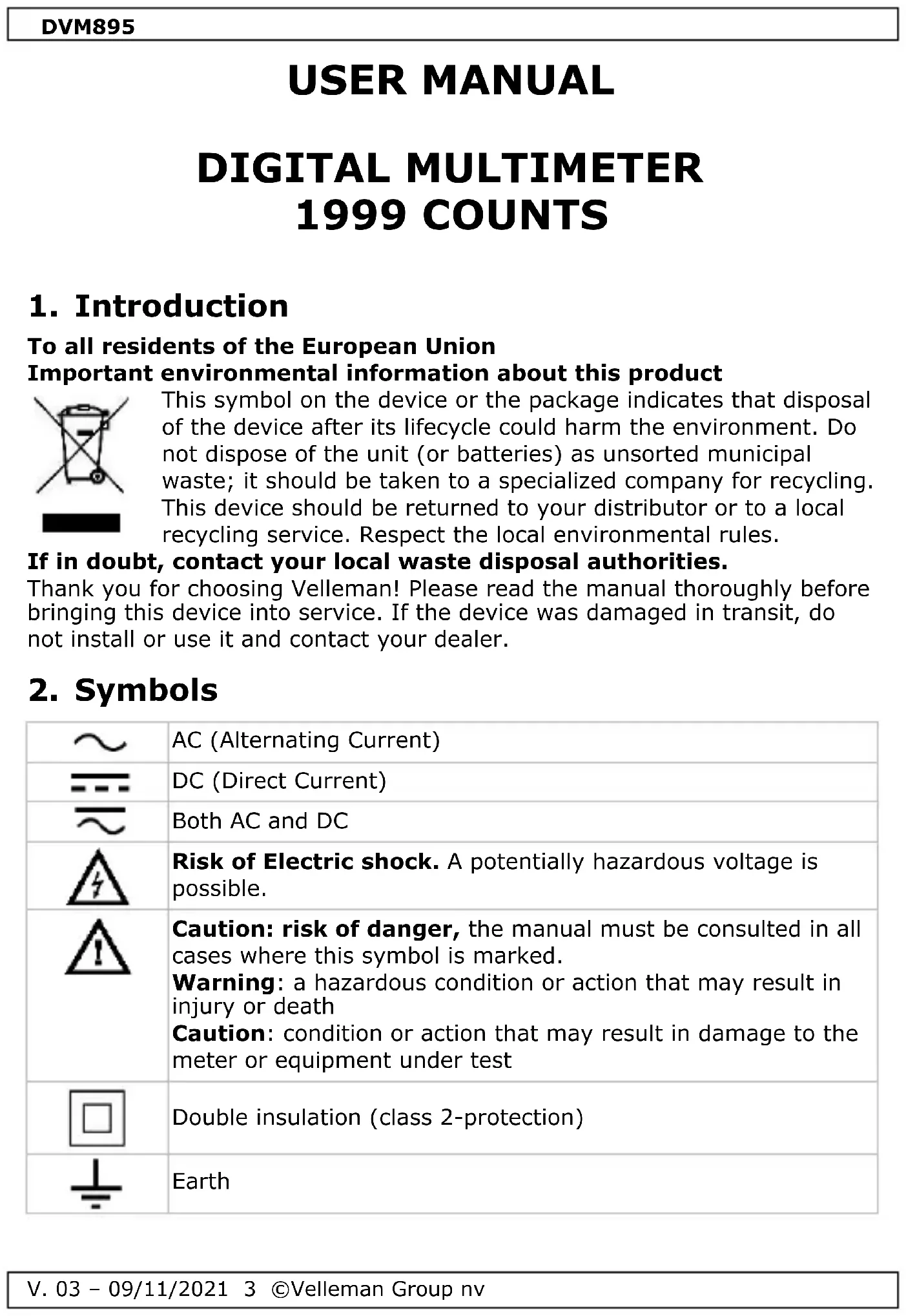 V. 03 – 09/11/2021 8 ©Velleman Group nv
