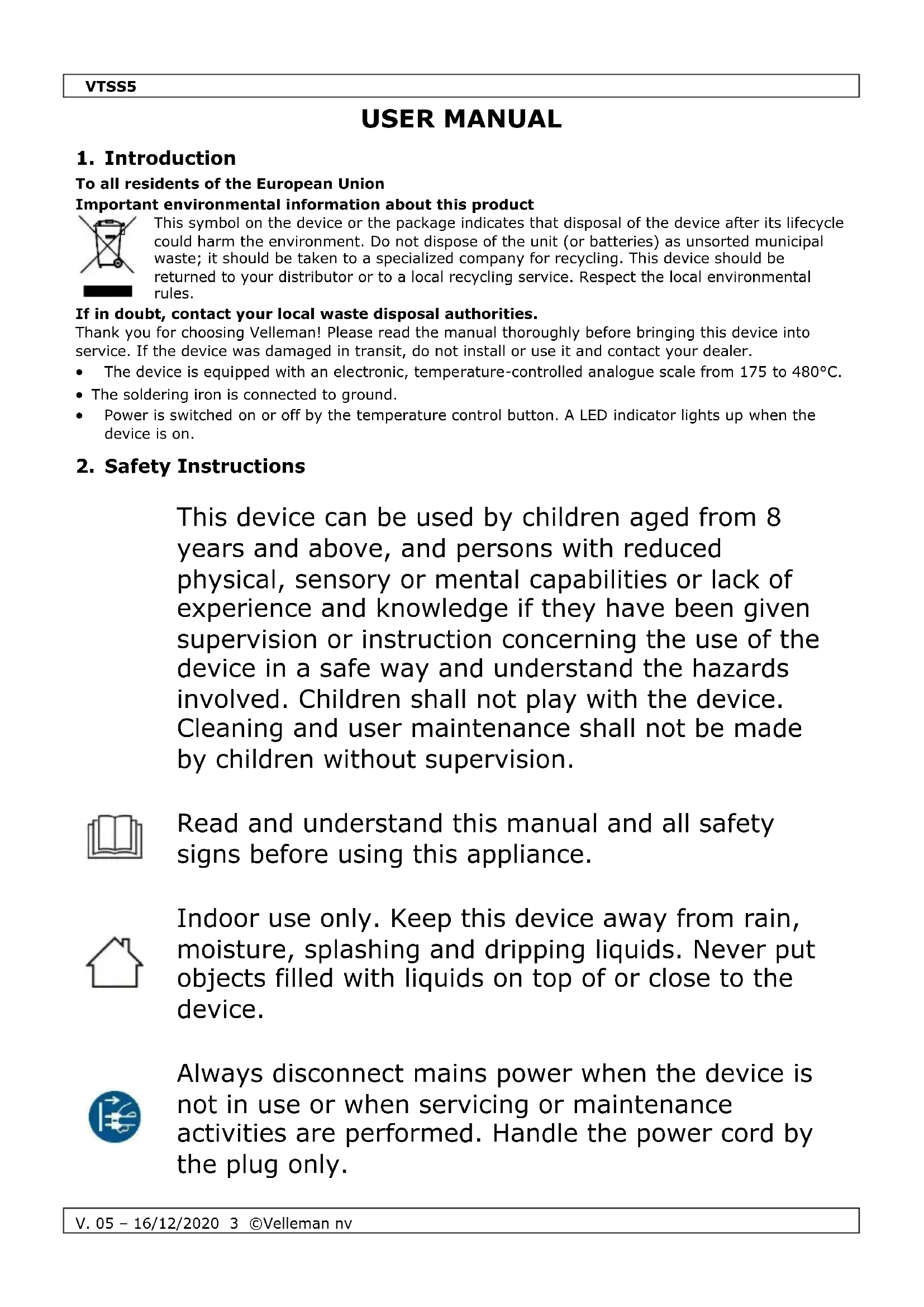 V. 05 – 16/12/2020 4 ©Velleman nv