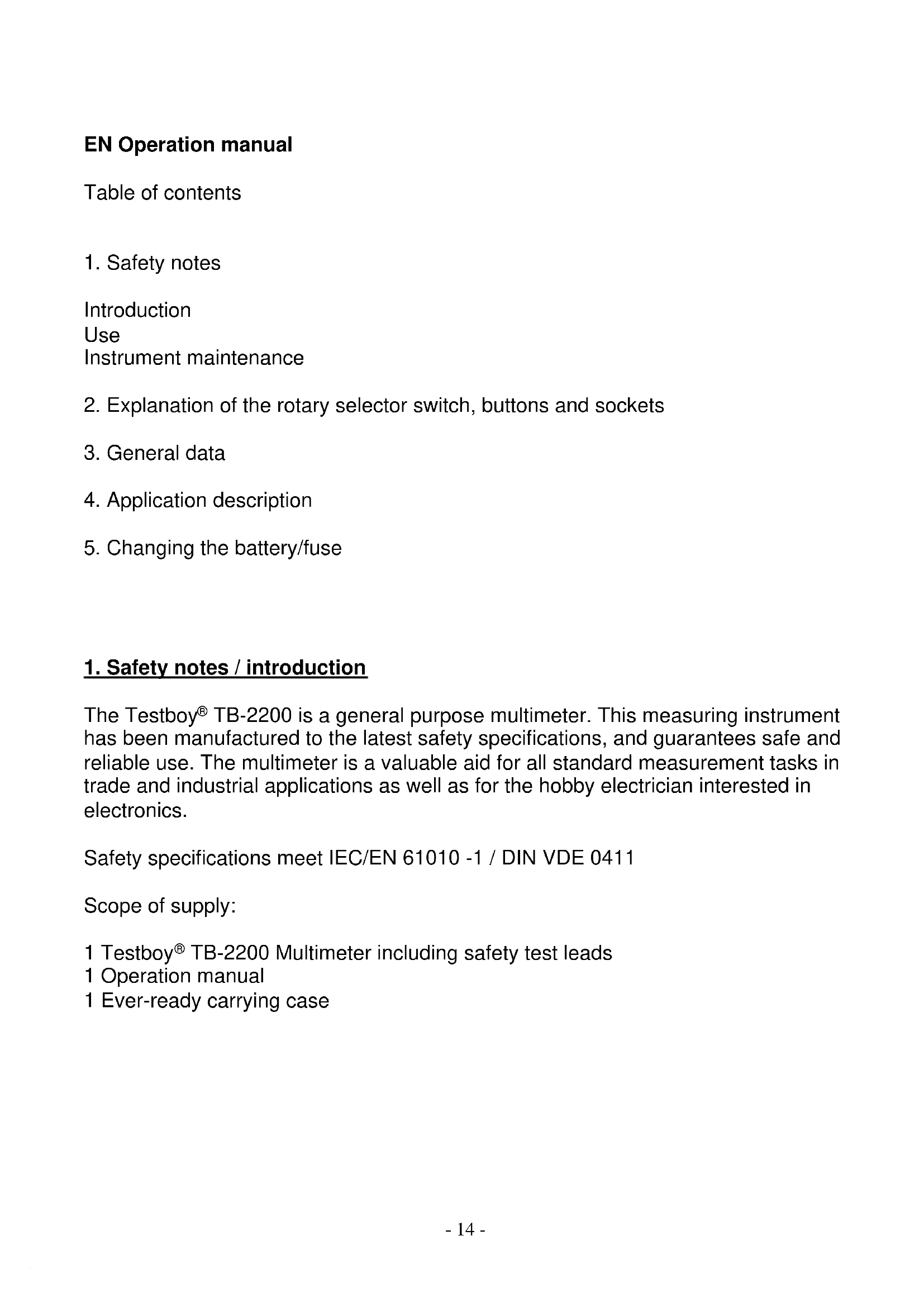 The Testboy® TB-2200 left our factory in a technically safe and flawless condition. In order to maintain this condition, the user must observe the safety notes contained in this manual.