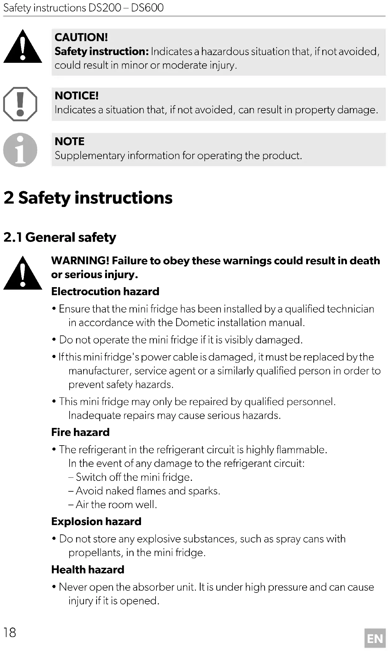 Download the instructions for your Fridge in PDF format for free! Find your manual DS 200BI - DOMETIC and take your electronic device back in hand. On this page are published all the documents necessary for the use of your device. DS 200BI by DOMETIC.
