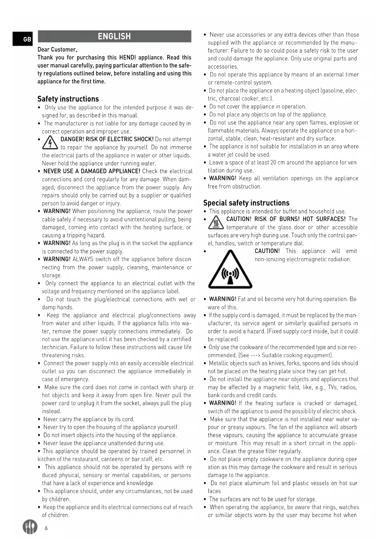 ENGLISH Dear Customer, Thank you for purchasing this HENDI appliance. Read this user manual carefully, paying particular attention to the safe