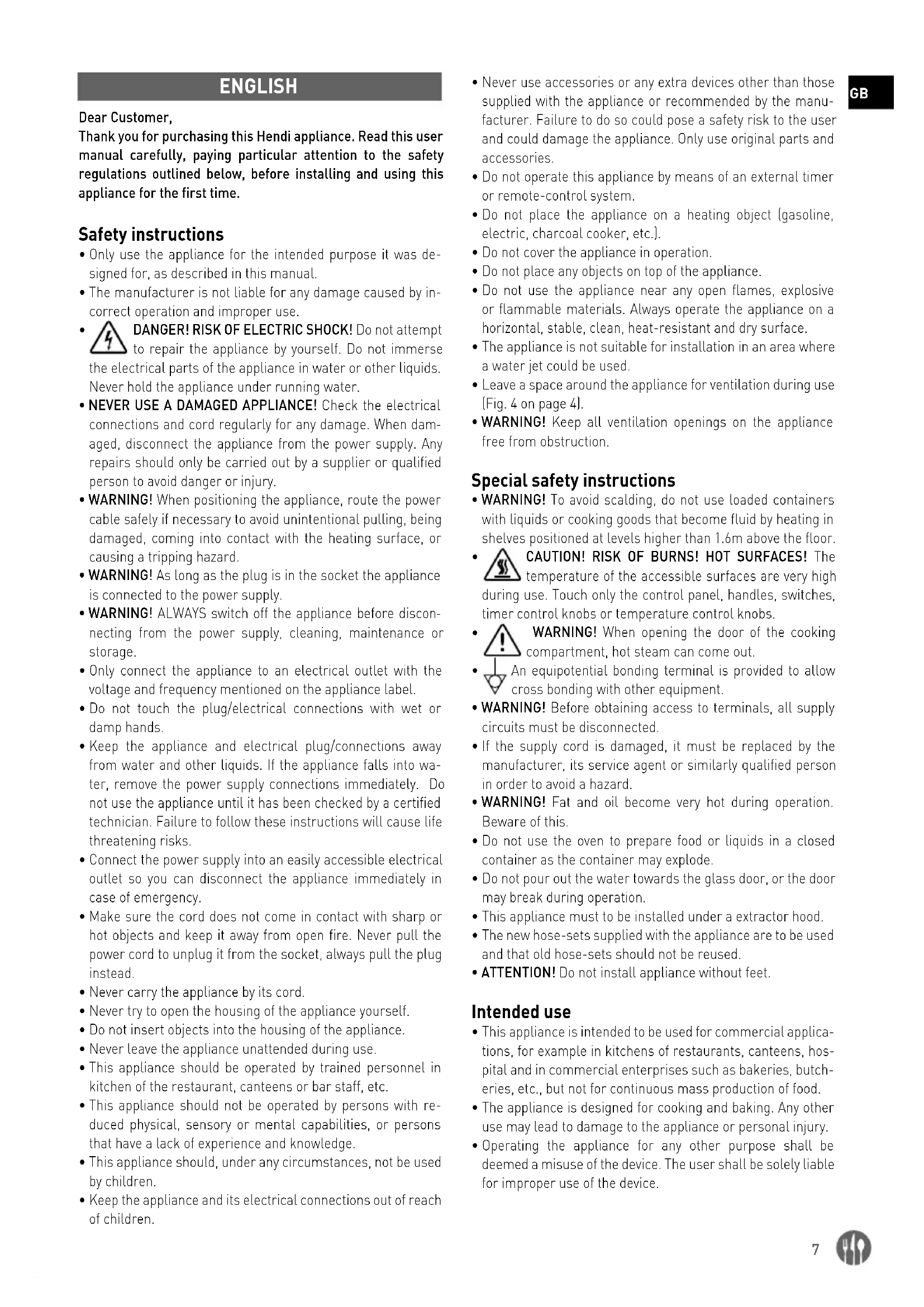 ENGLISH Dear Customer, Thank you for purchasing this Hendi appliance. Read this user manual carefully, paying particular attention to the safety regulations outlined below, before installing and using this appliance for the first time. Safety instructions