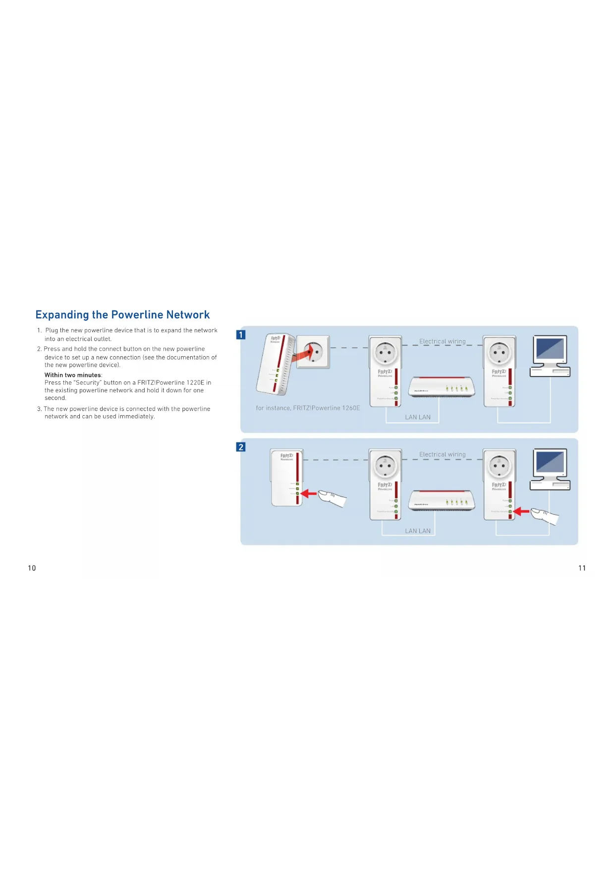and your computers or other network devices to the sec- ond FRITZ!Powerline 1220E using the LAN cables.
