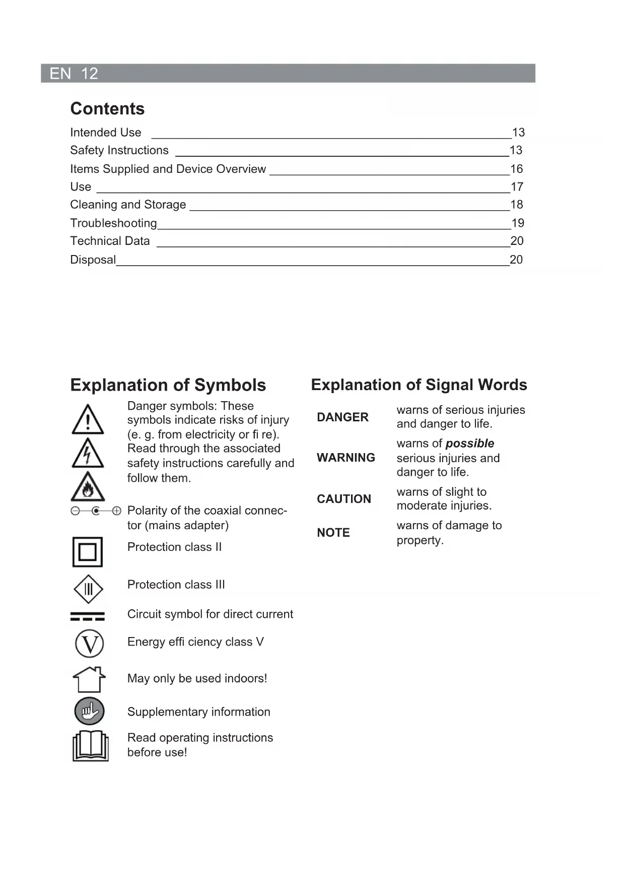 Instruction manual starting on page 12