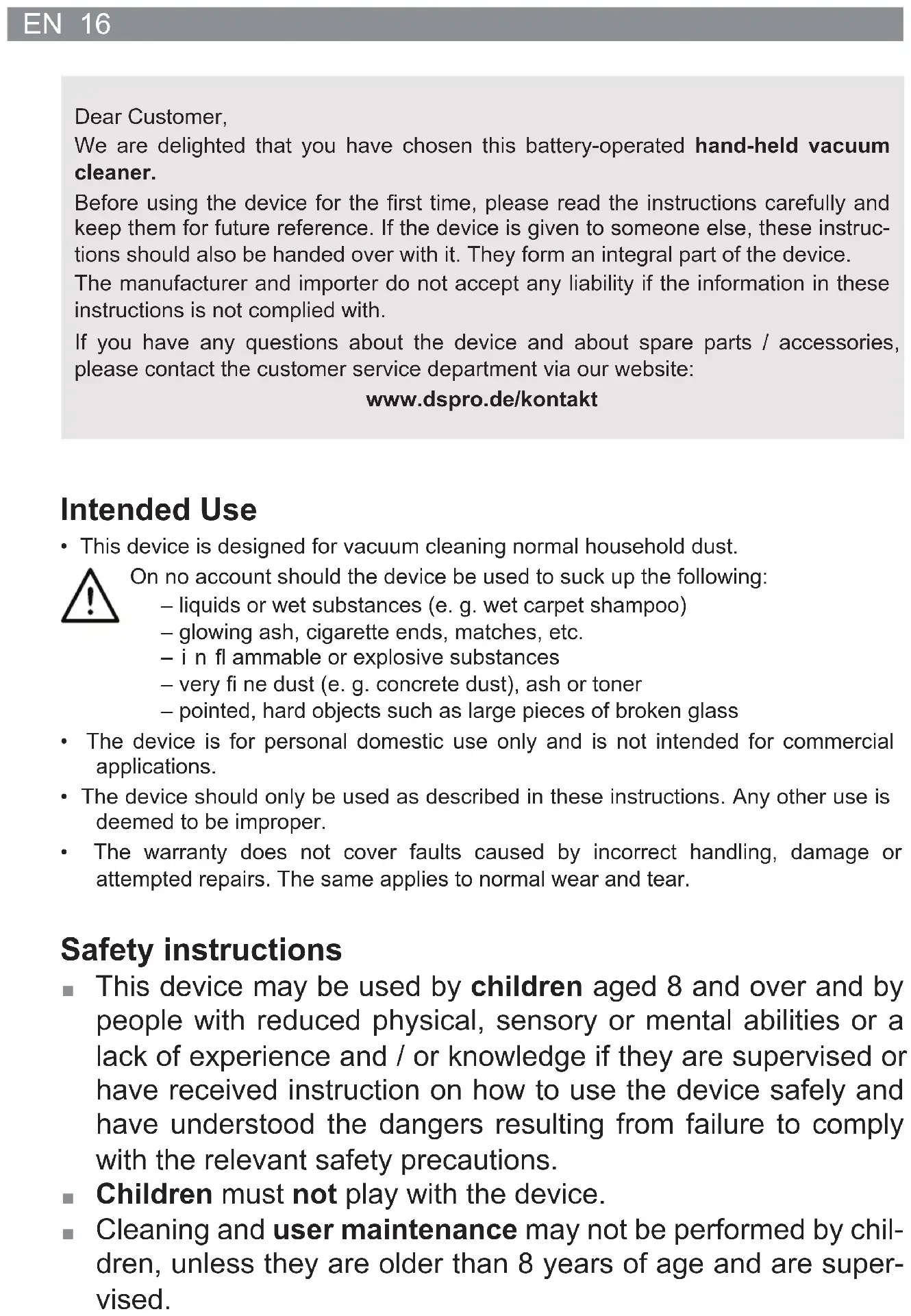 We are delighted that you have chosen this battery-operated hand-held vacuum cleaner.