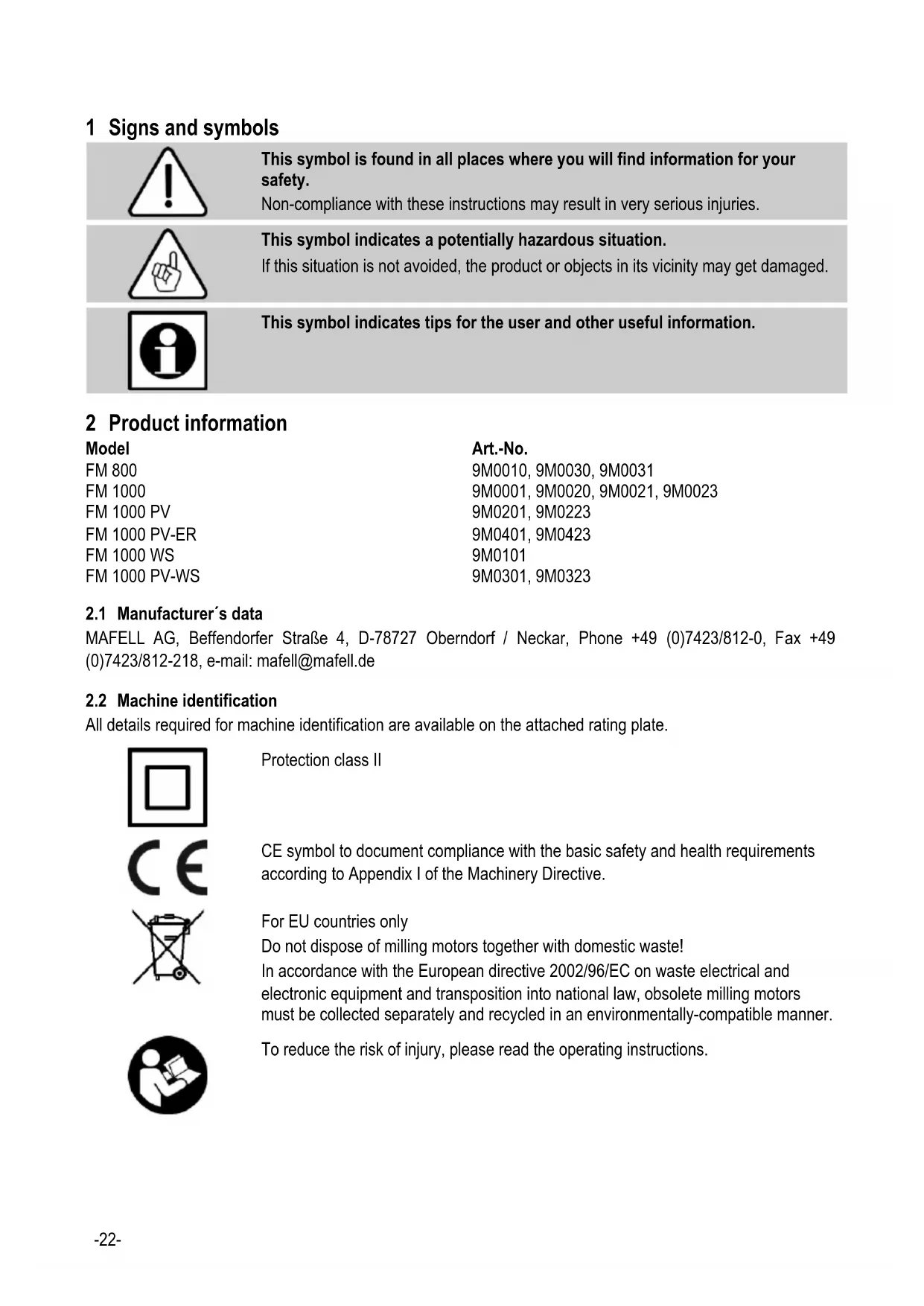 Download the instructions for your Milling machine in PDF format for free! Find your manual FM 1000 - Mafell and take your electronic device back in hand. On this page are published all the documents necessary for the use of your device. FM 1000 by Mafell.