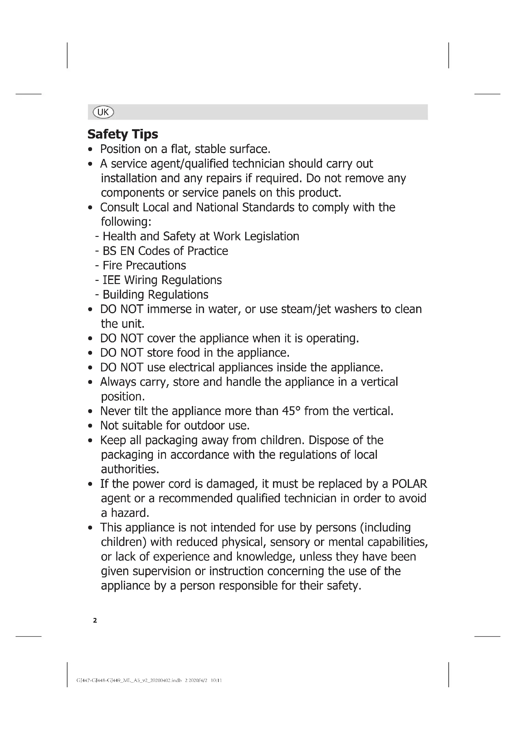 - A POLAR agent or qualified technician must carry out repairs if required. GJ447-GJ448-GJ449_ML_A5_v2_20200402.indb 4 2020/4/2 10:115