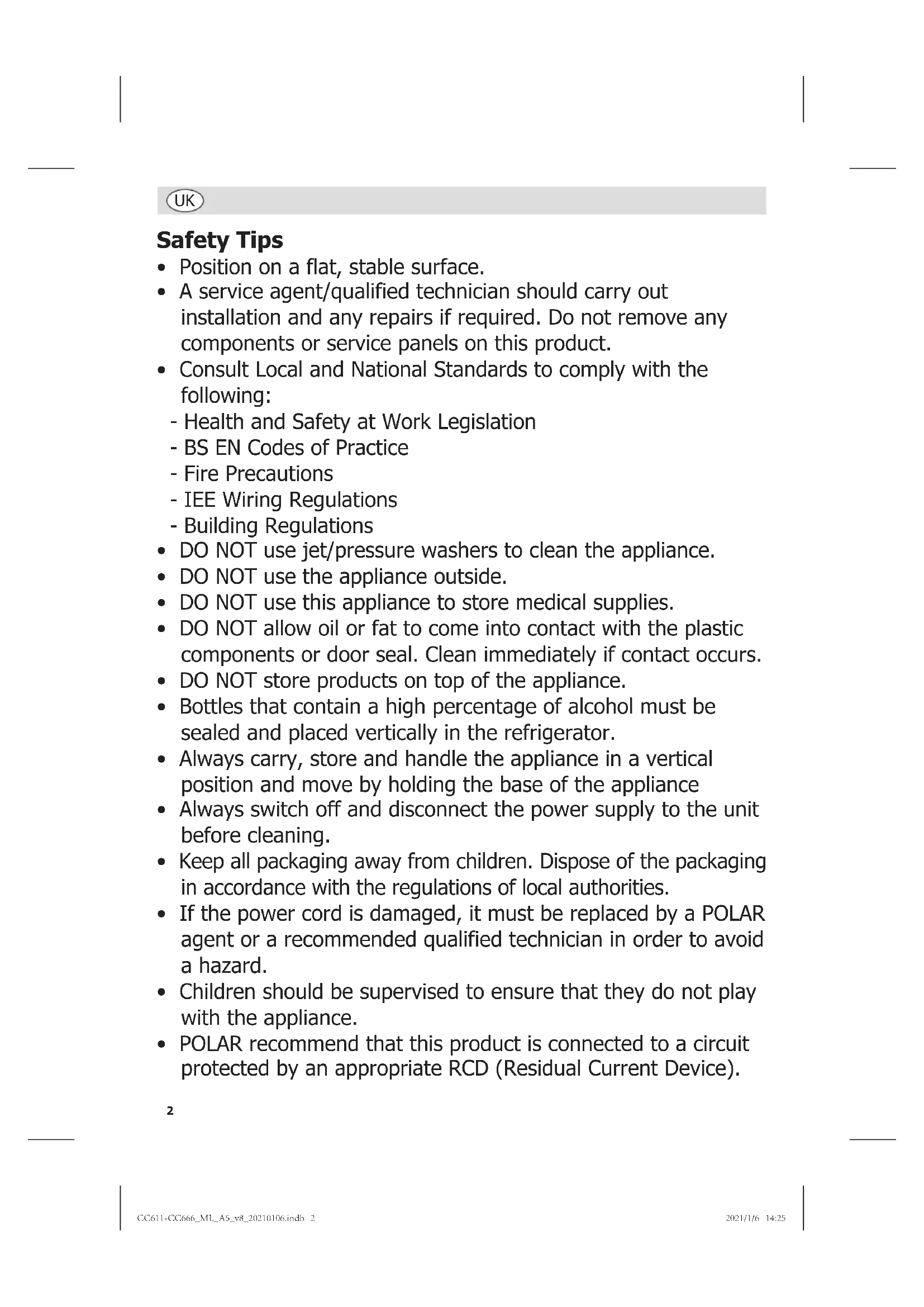 - POLAR recommend that this product is connected to a circuit protected by an appropriate RCD (Residual Current Device).