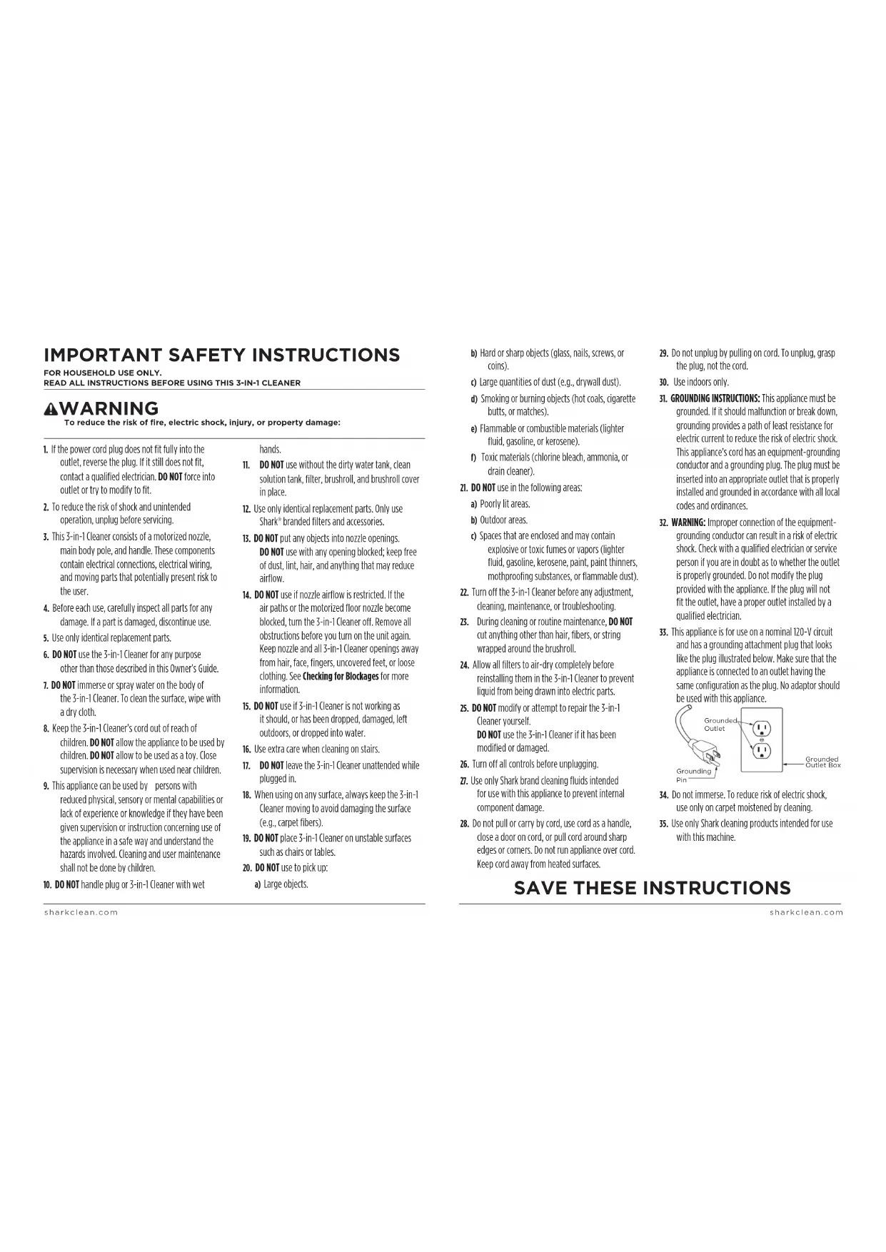 10. DO NOT handle plug or 3-in-1 Cleaner with wet