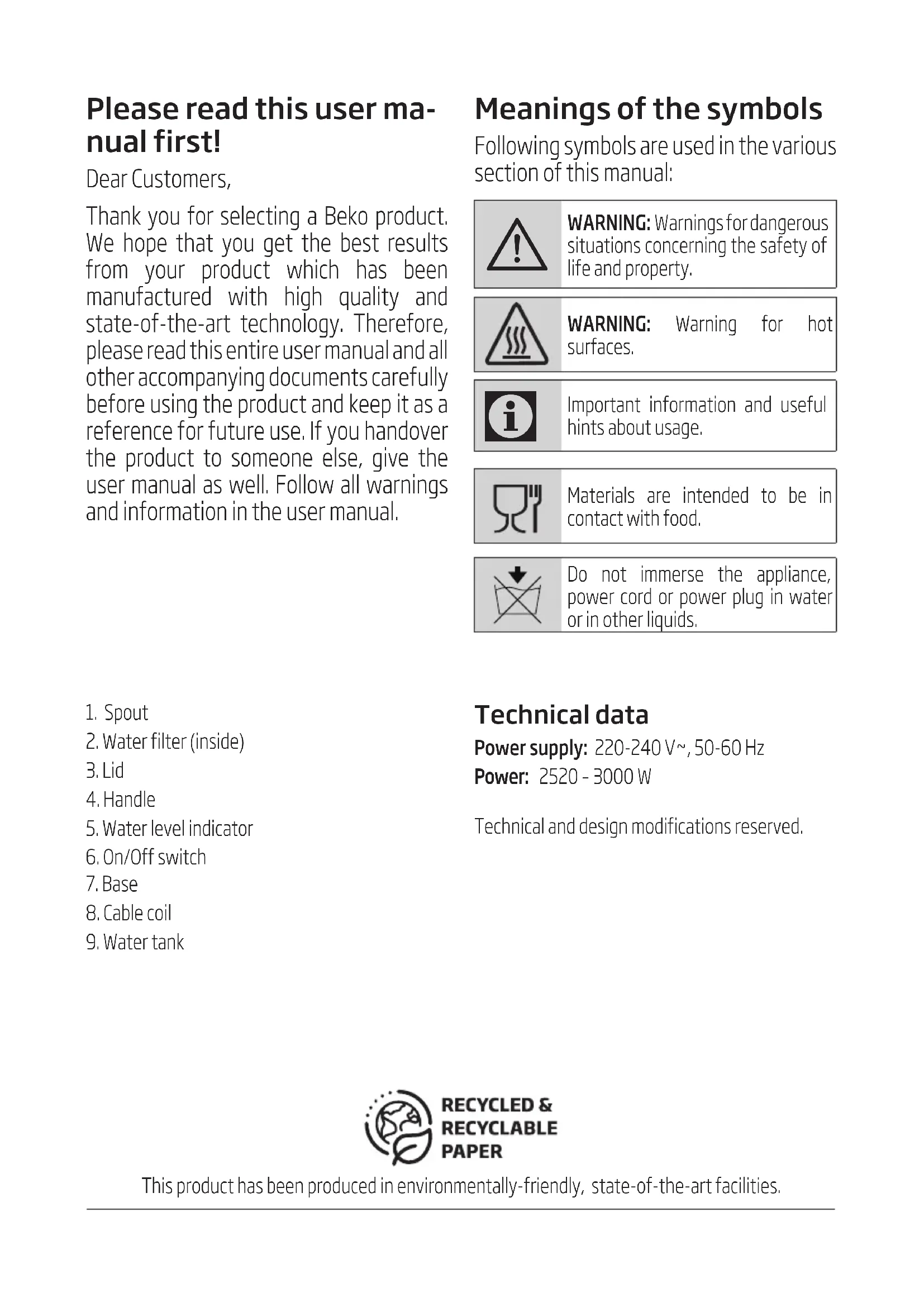 WKM8307CR - Kettle BEKO - Free user manual and instructions